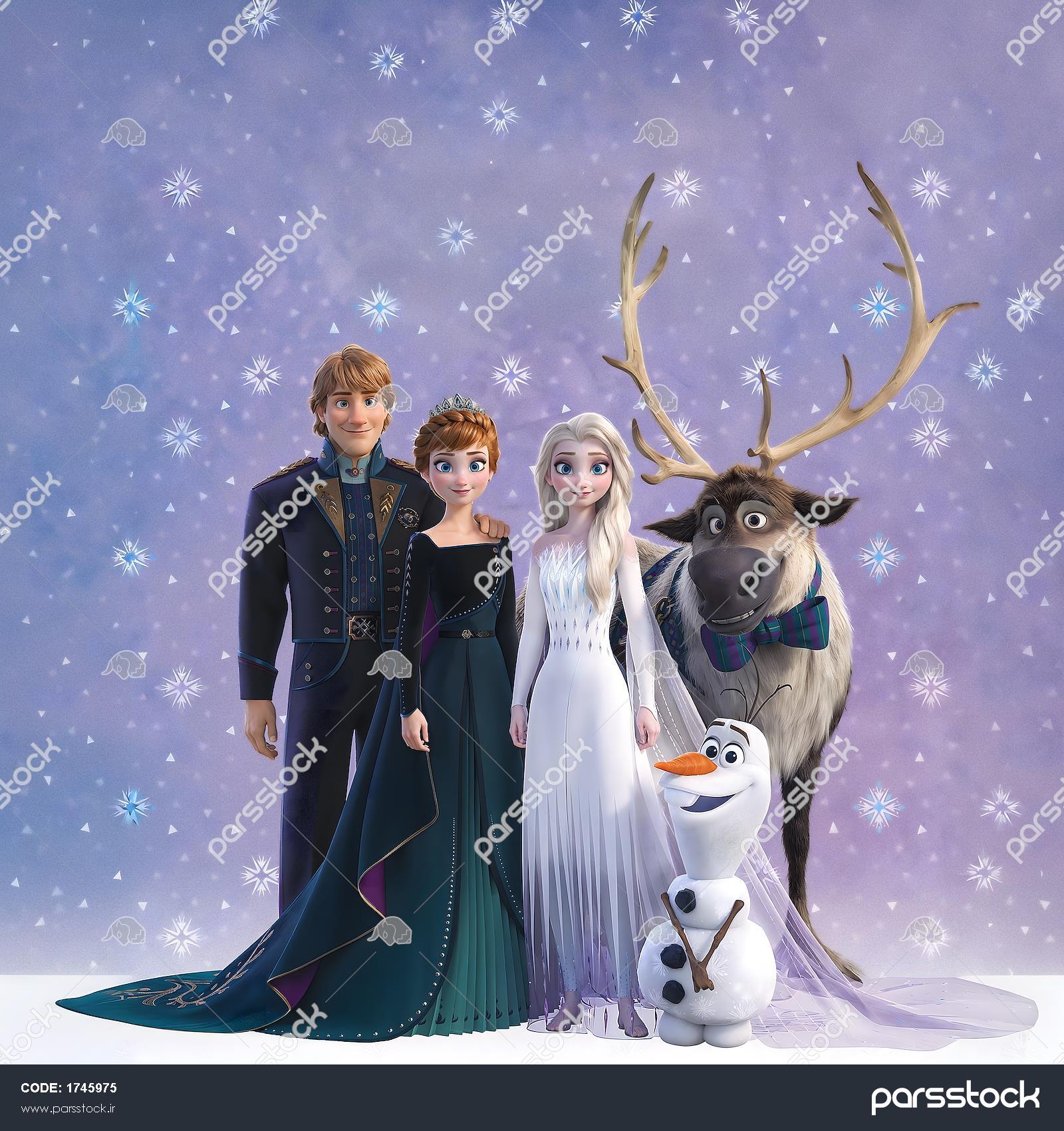 طرح پوستر دیواری شخصیت‌های فروزن (السا، آنا و اولاف) برای اتاق نوجوان