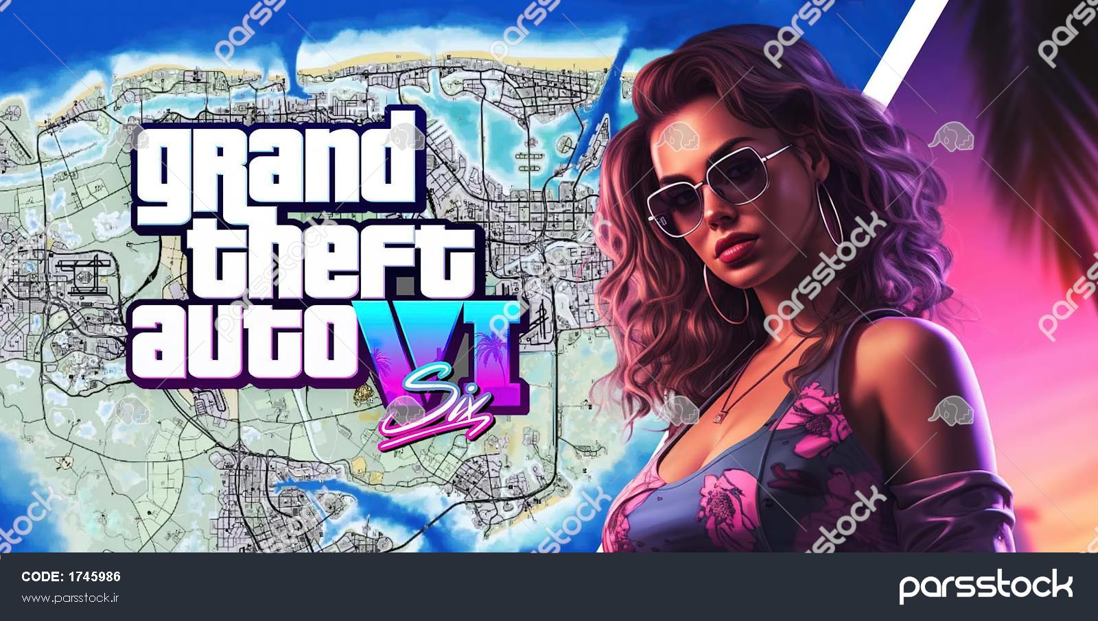طرح زن جذاب جی تی ای ۶ با نقشه و سبک شب‌تاب برای تابلو تزیینی