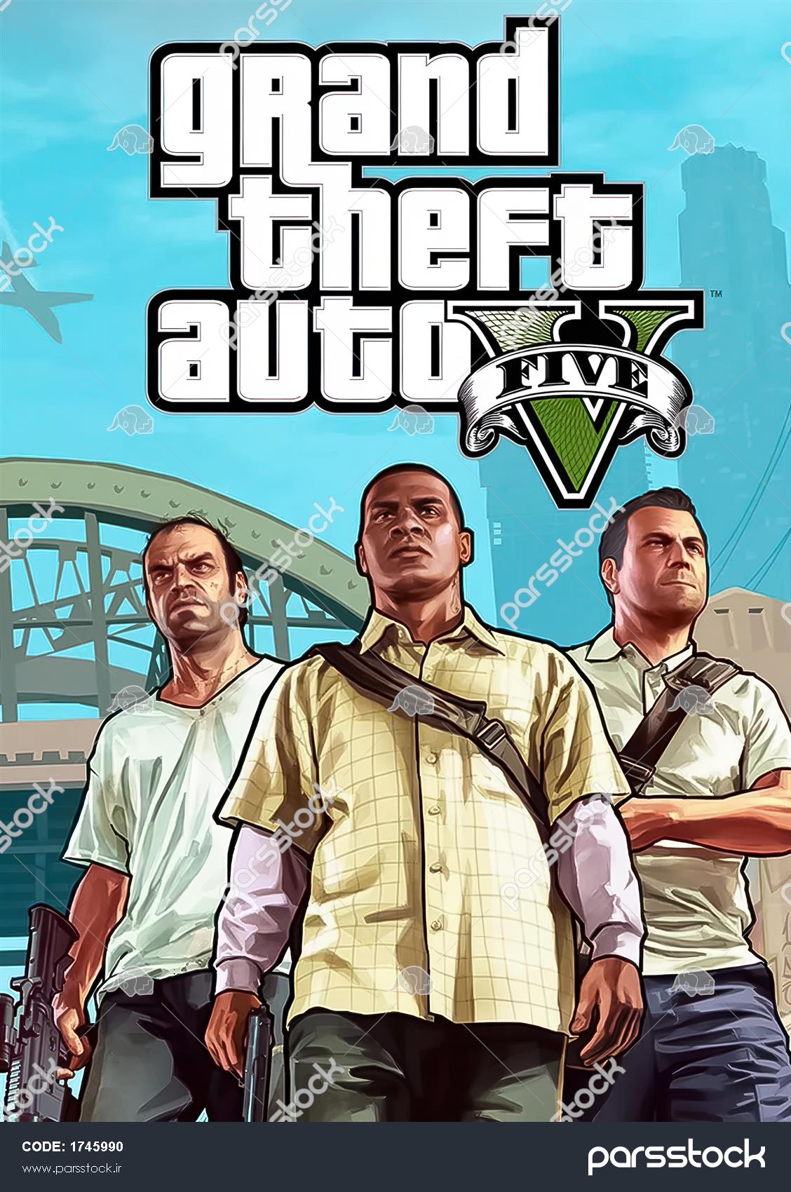 عکس جلد بازی جی تی ای ۵ با سه شخصیت اصلی برای پوستر دیواری