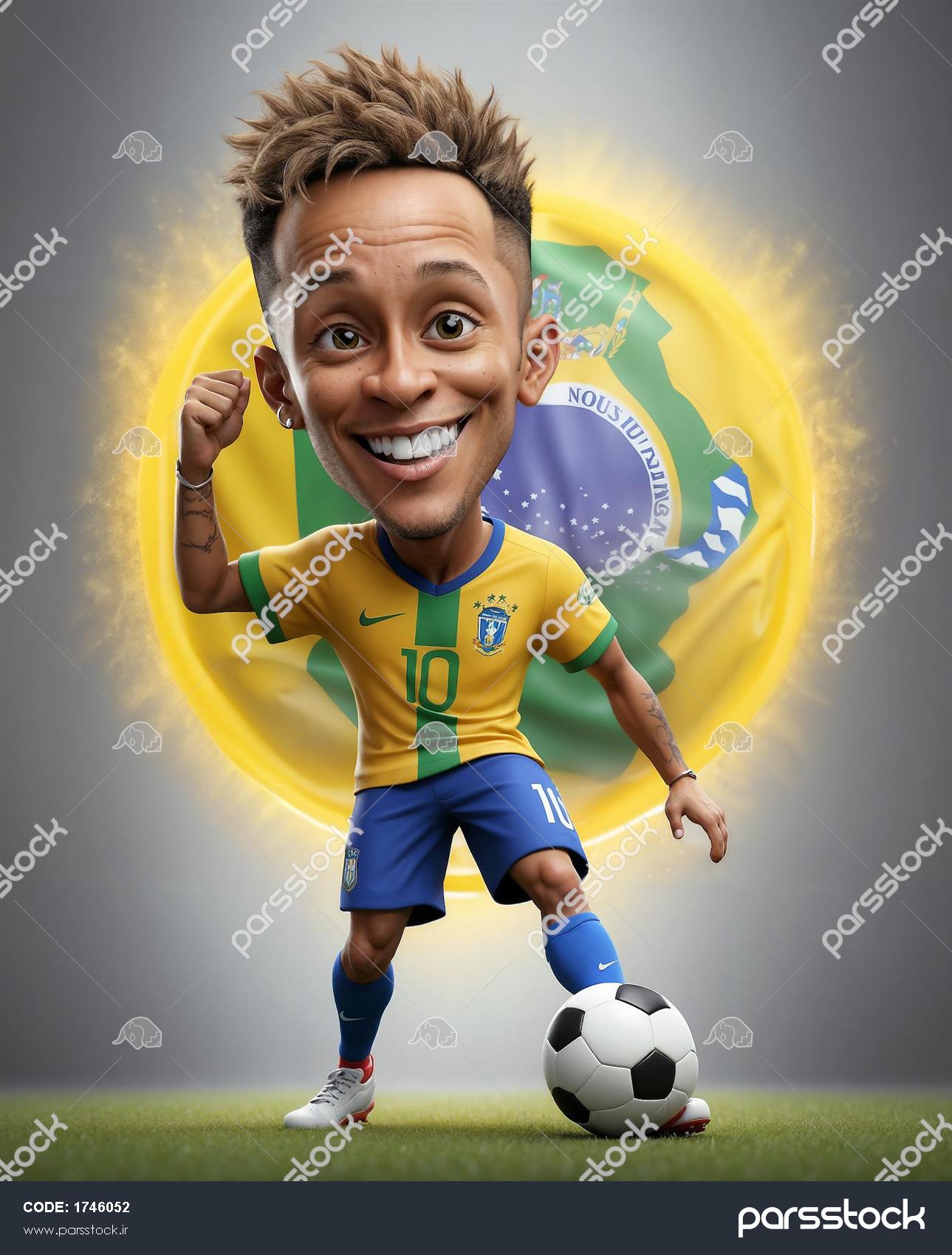 فیگور کارتونی نیمار با لباس برزیل برای پوستر دیواری اتاق نوجوان