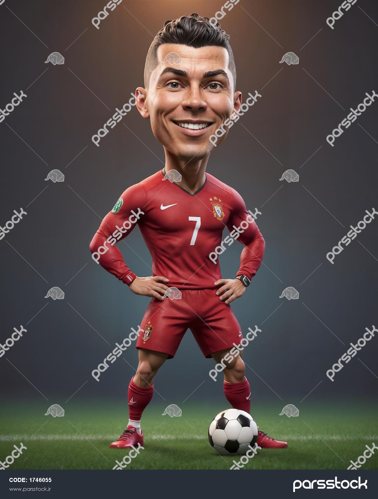 فیگور کارتونی رونالدو با لباس پرتغال برای تابلو دکوراتیو ورزشی
