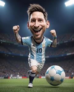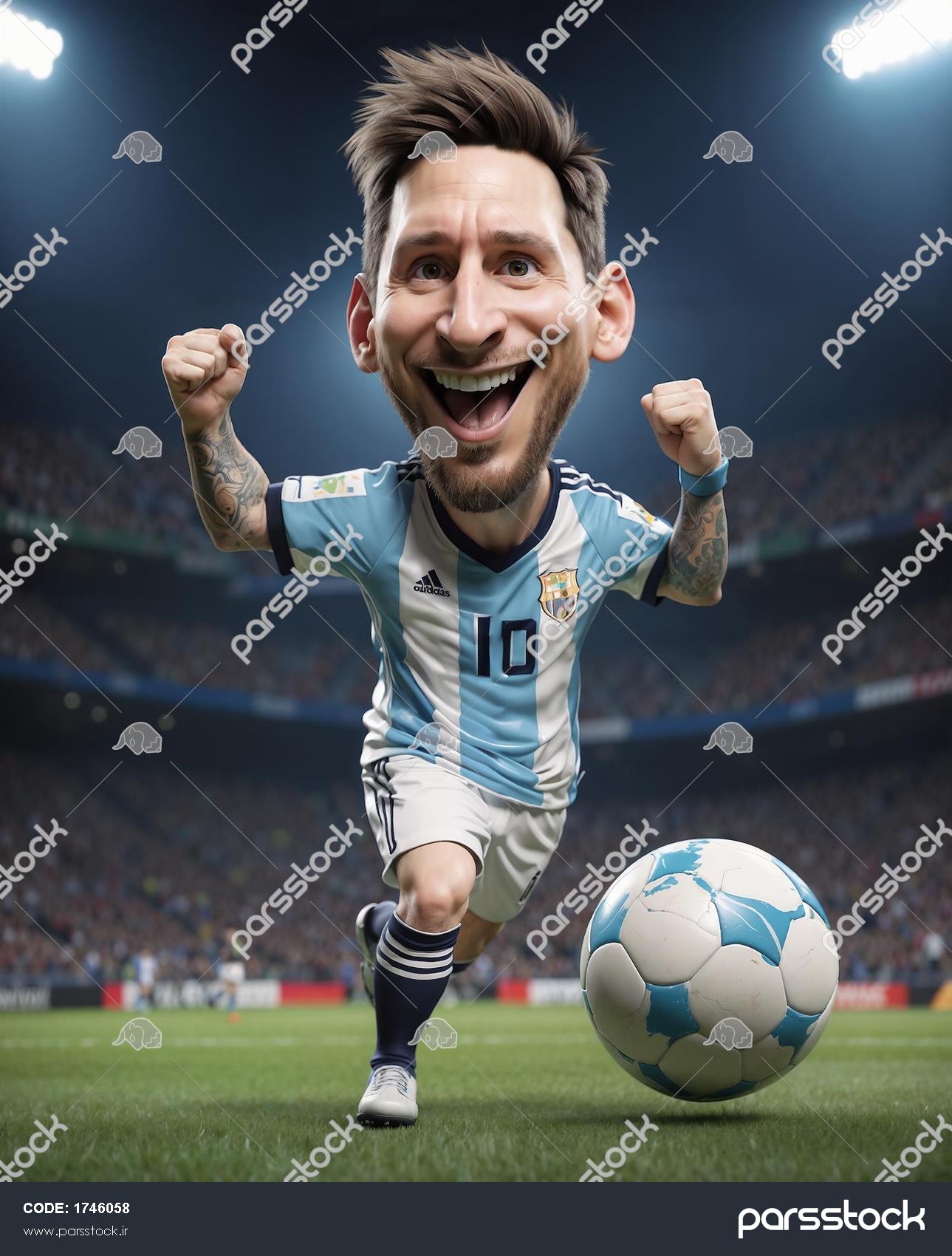 فیگور کارتونی مسی با لباس آرژانتین در حال شادی برای تابلو اتاق
