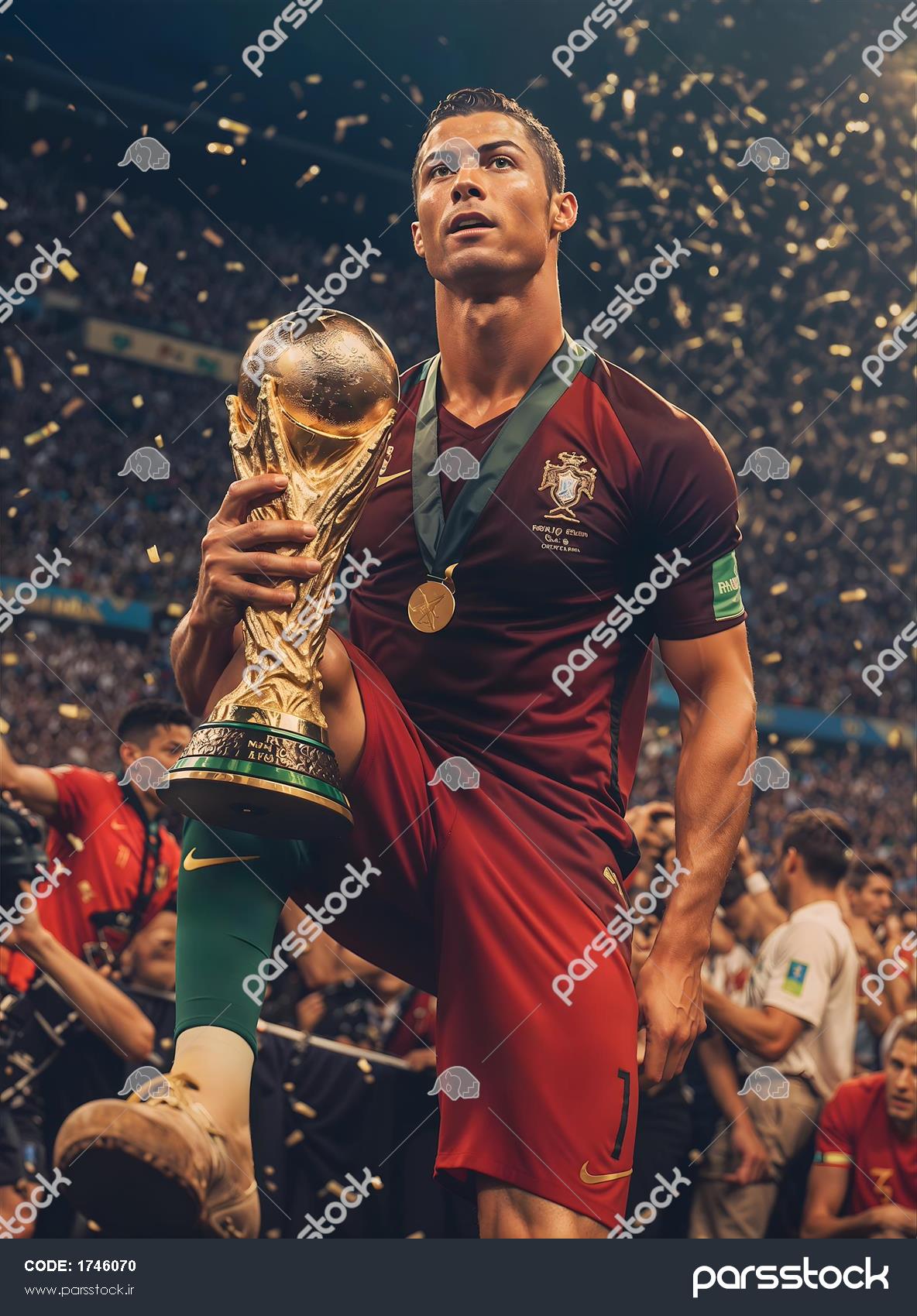 عکس رونالدو با لباس پرتغال و جام قهرمانی برای تابلو دکوراتیو