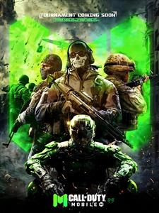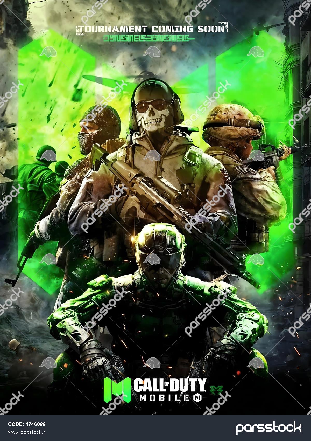 پوستر بازی ندای وظیفه موبایل با شخصیت‌های جنگی و تم سبز نئونی