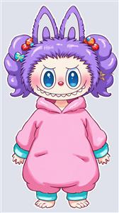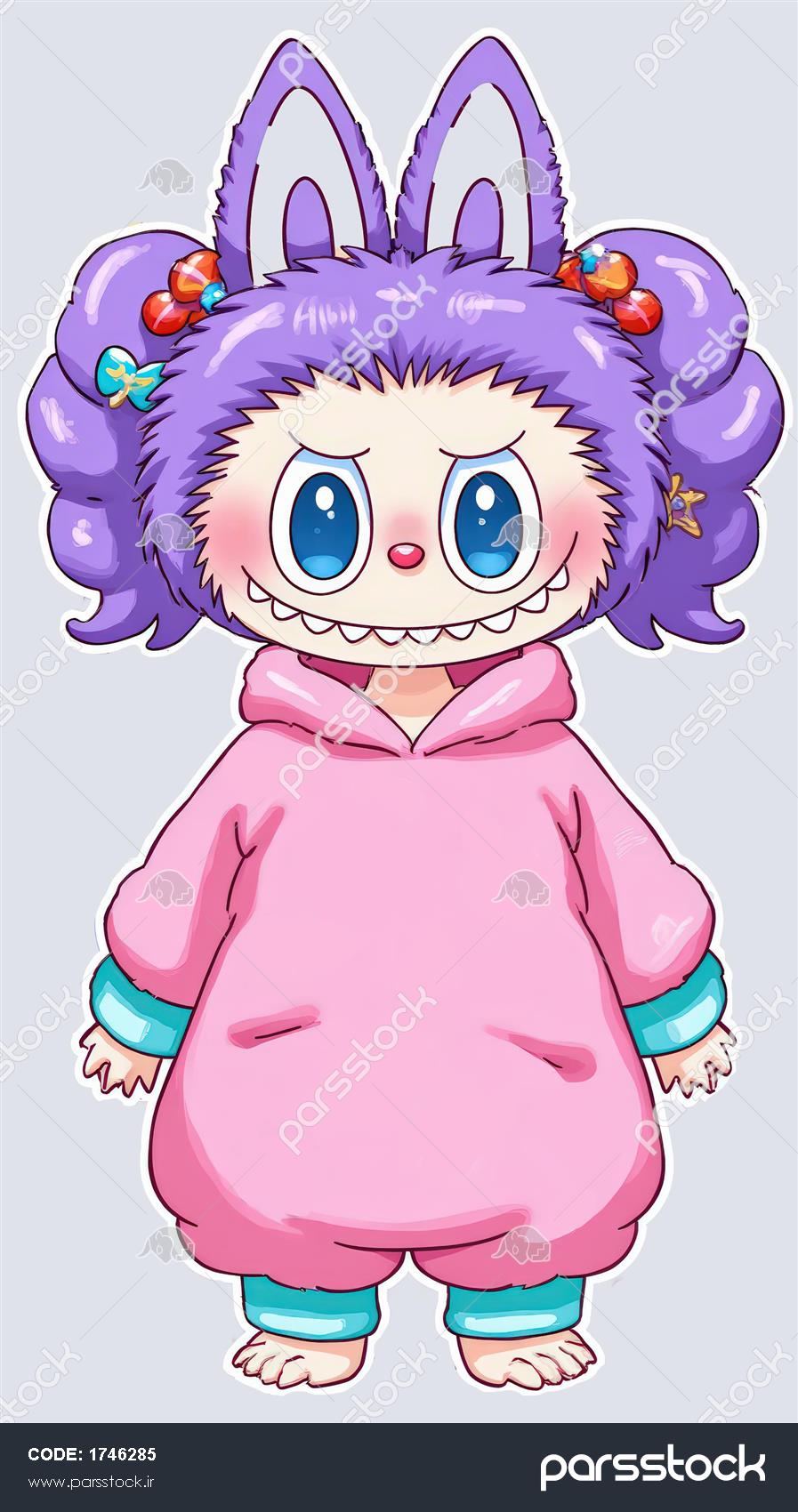عکس لبوبو فانتزی با لباس صورتی و موهای بنفش برای روتختی دخترانه