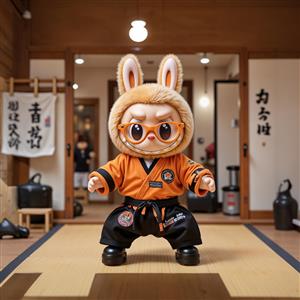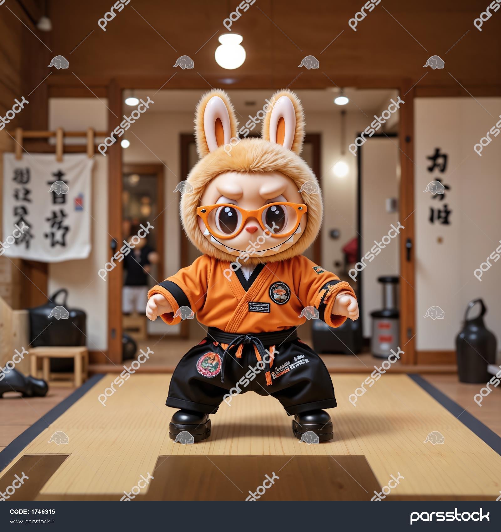 طرح لبوبو با لباس جودو و عینک برای تابلو دکوراتیو اتاق ورزشکار