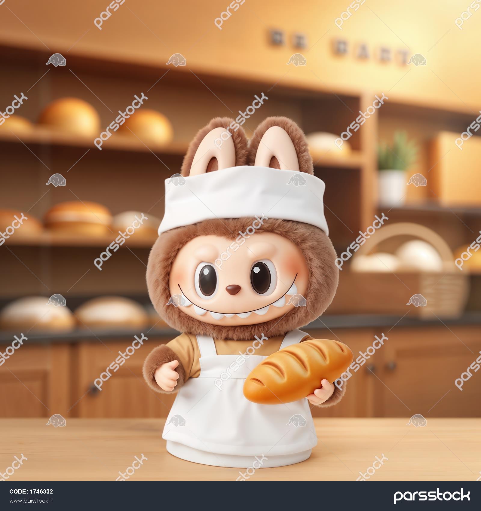 تصویر لبوبو نانوا با نان باگت برای پوستر دکوراتیو آشپزخانه
