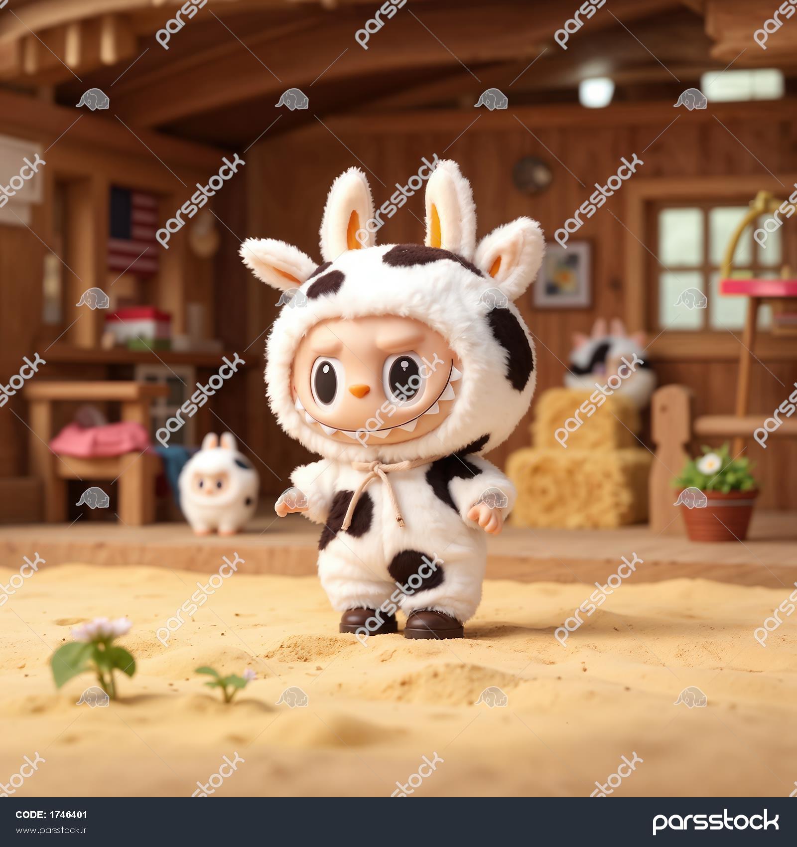 عکس لبوبو لباس گاو در مزرعه برای پوستر دیواری اتاق کودک و تابلو