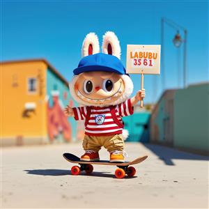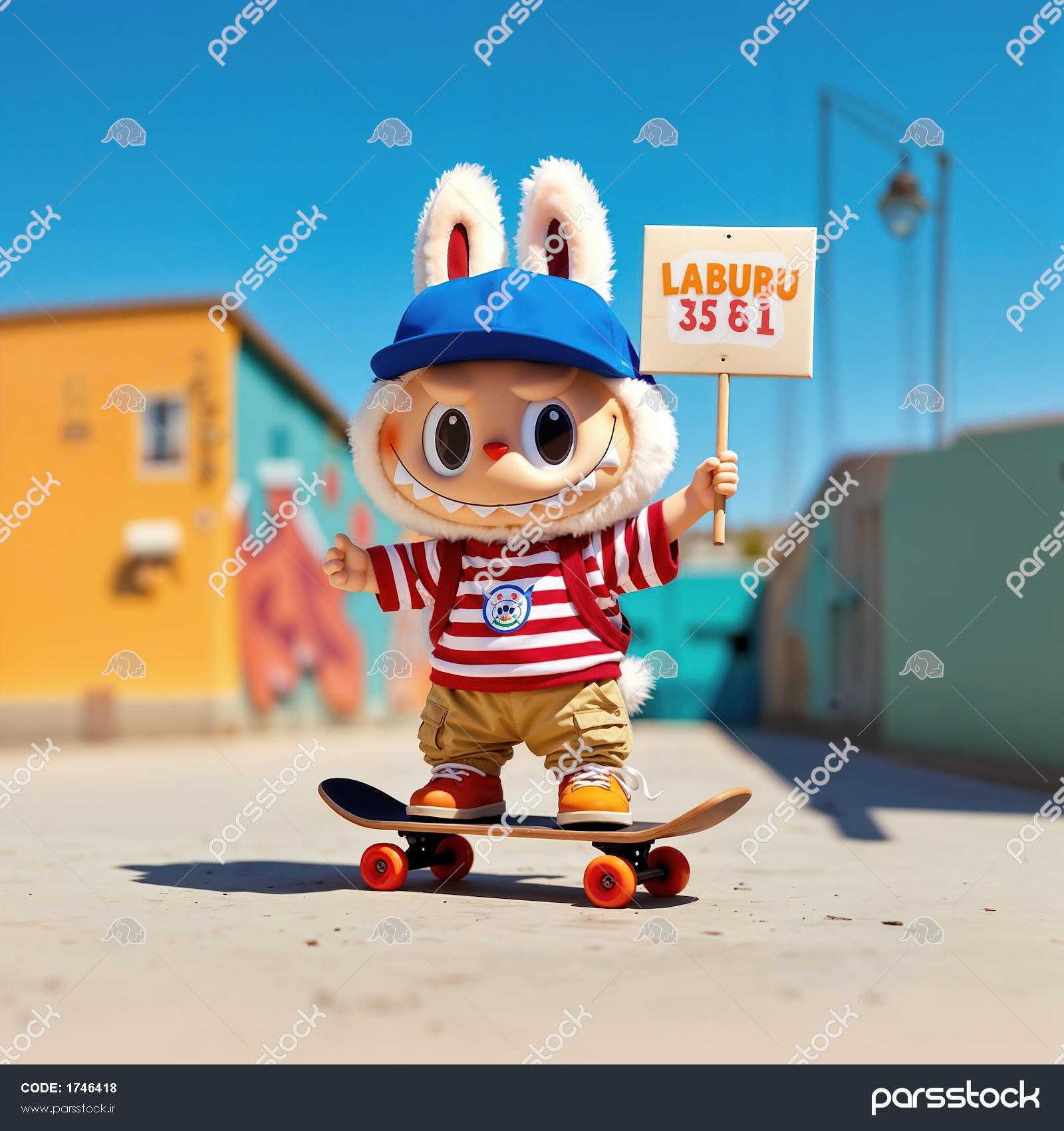 طرح لبوبو اسکیت‌سوار با کلاه ورزشی در خیابان برای پوستر اتاق جوانان