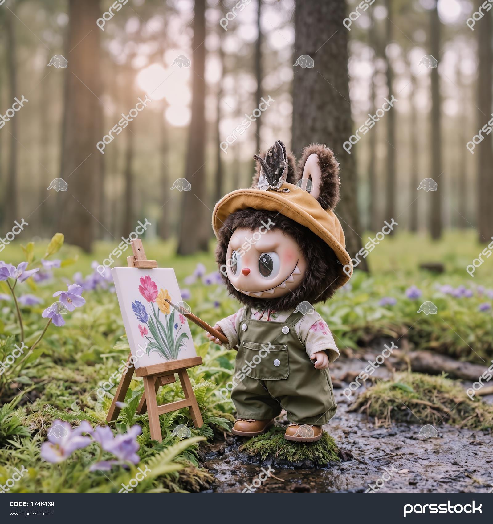 تصویر لبوبو نقاش فانتزی در جنگل مه‌آلود برای چاپ روی تابلو و پوستر دکوراتیو