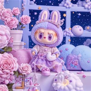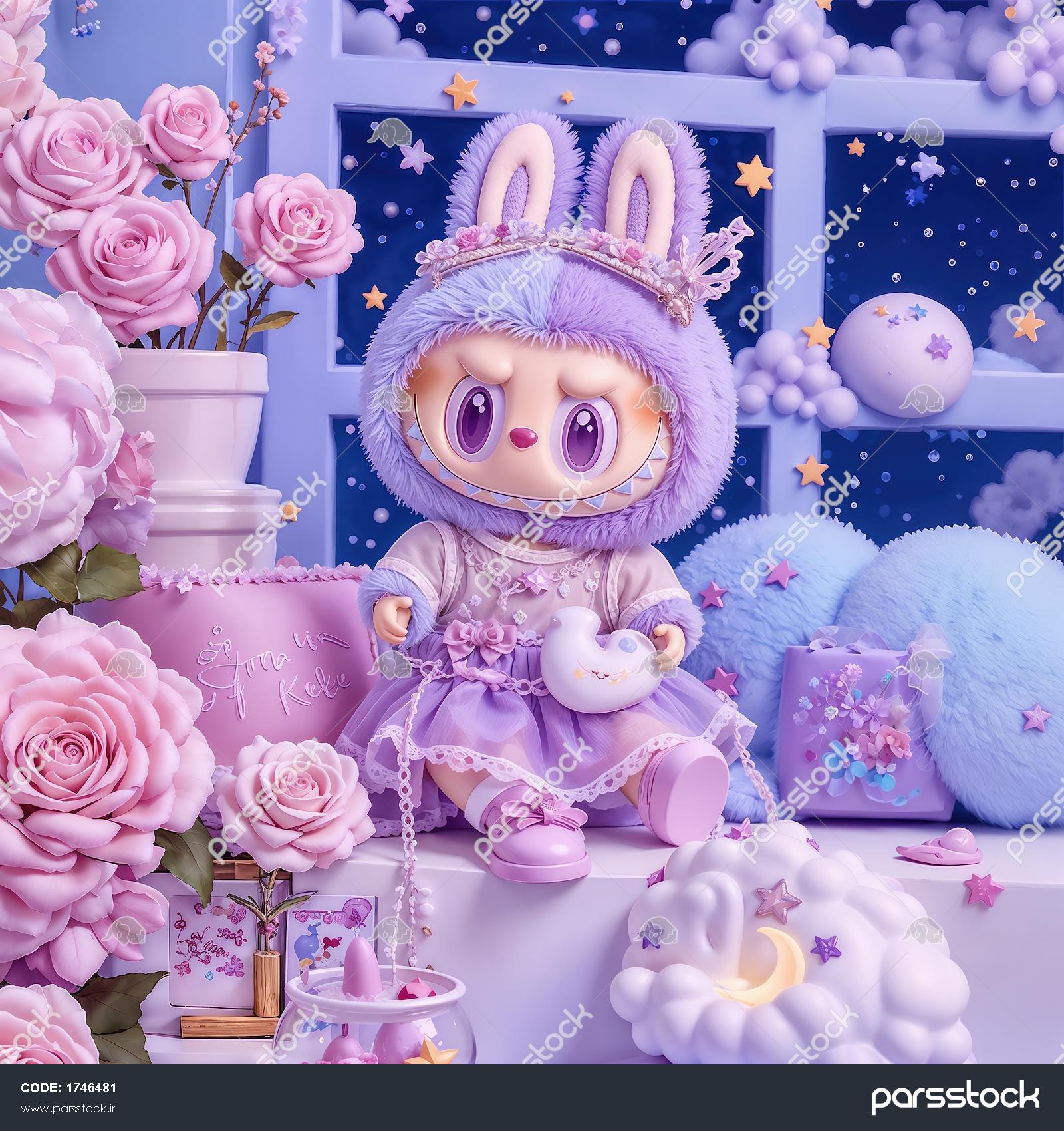 طرح لبوبو فانتزی بنفش در اتاق پرنسسی با گل‌های صورتی برای روتختی