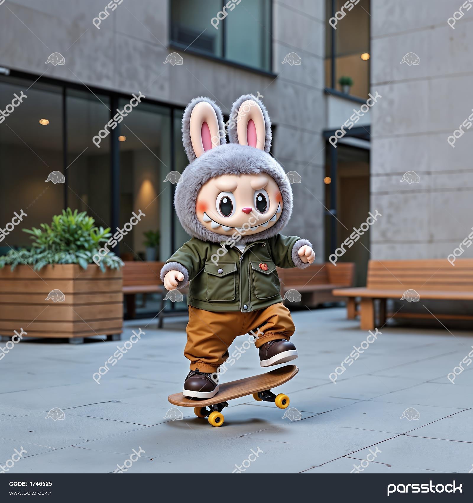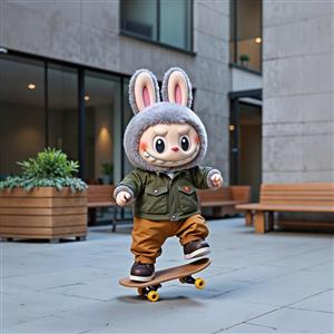 عکس لبوبو خاکستری اسکیت‌باز برای تابلو دکوراتیو اتاق نوجوانان