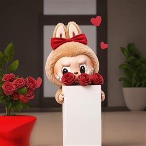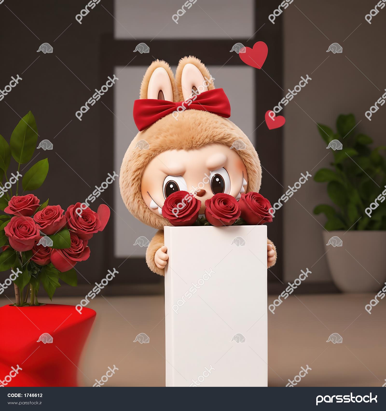عکس عروسک لبوبو فانتزی عاشقانه با گل رز برای پوستر یا تابلو دکوراتیو