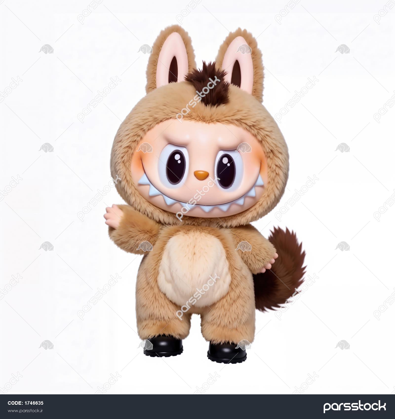 طرح لبوبو با لباس سنجاب بامزه پس‌زمینه سفید