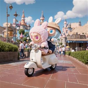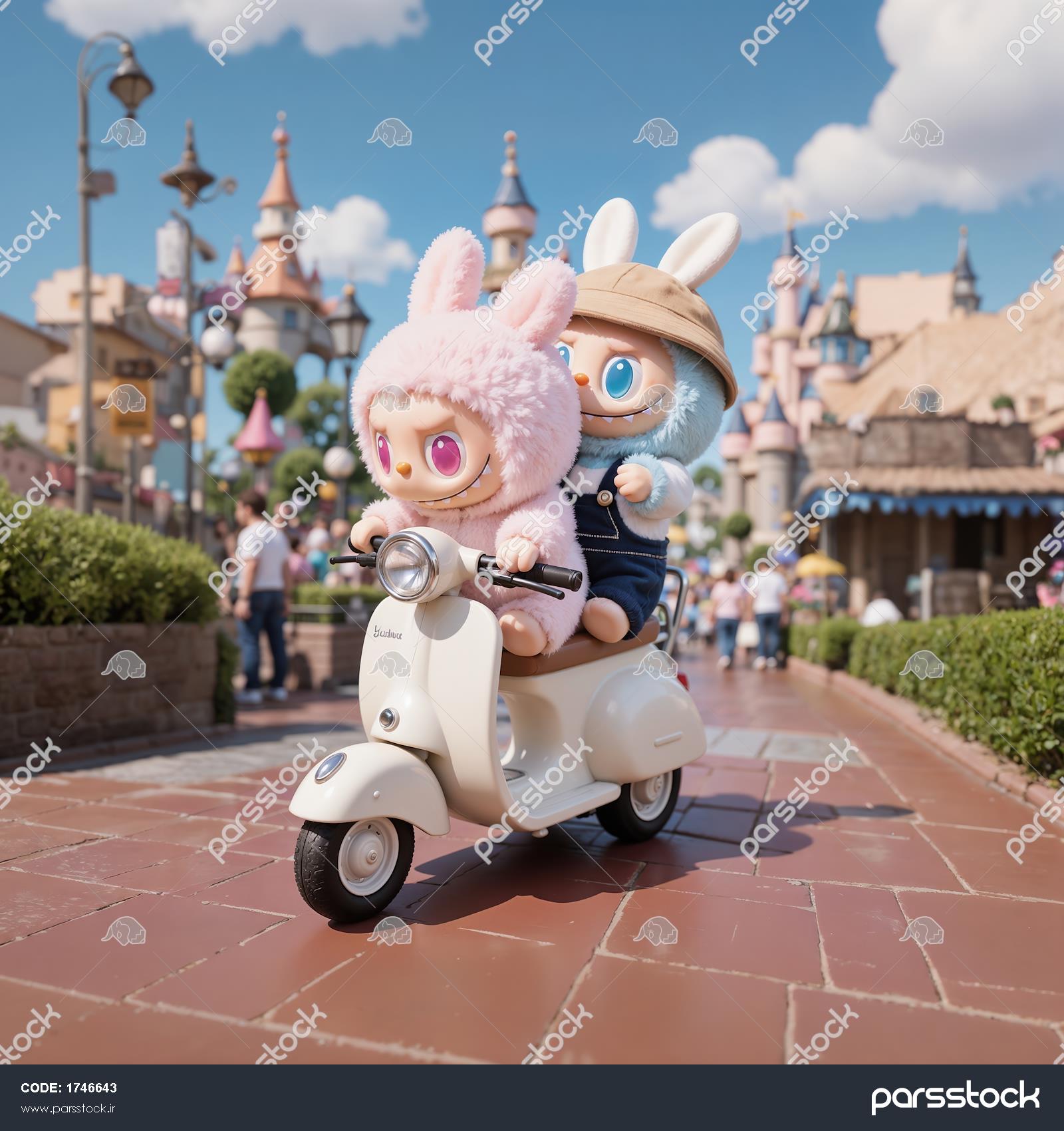 تصویر دو لبوبو در حال موتورسواری در پارک تفریحی فانتزی