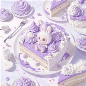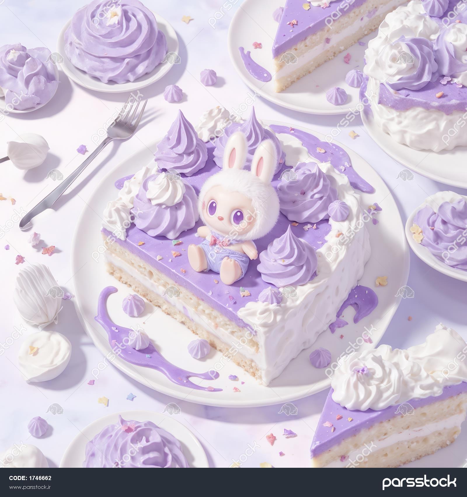 پوستر کیک بنفش با فیگور لبوبو فانتزی