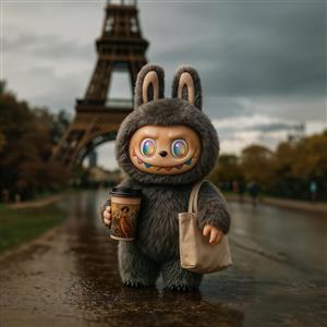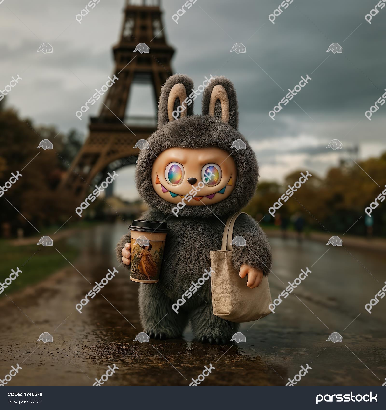 پوستر لبوبو توریست زیر باران کنار برج ایفل