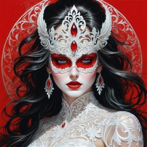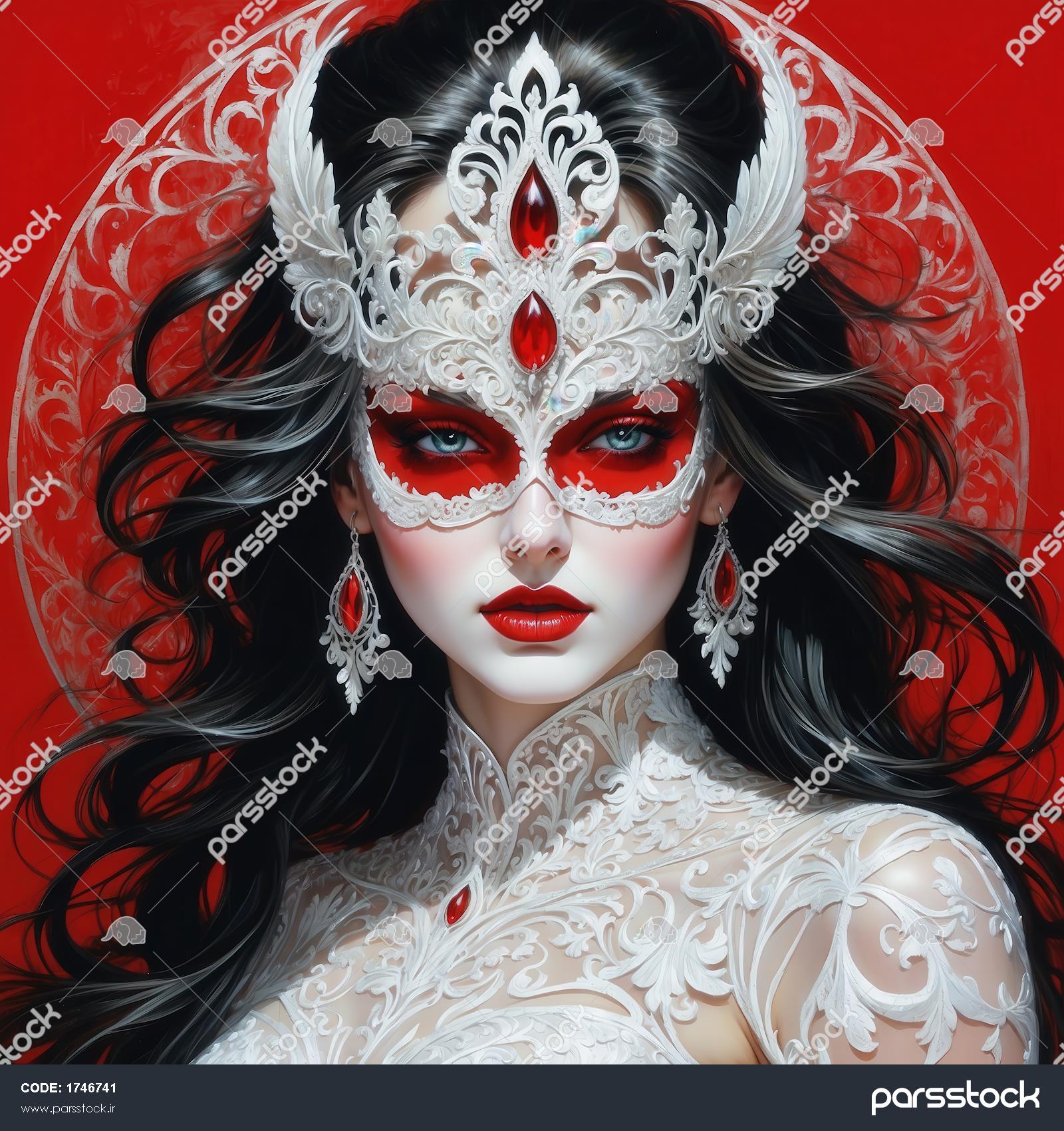 عکس ملکه فانتزی با ماسک و تاج سفید و قرمز برای چاپ عریض