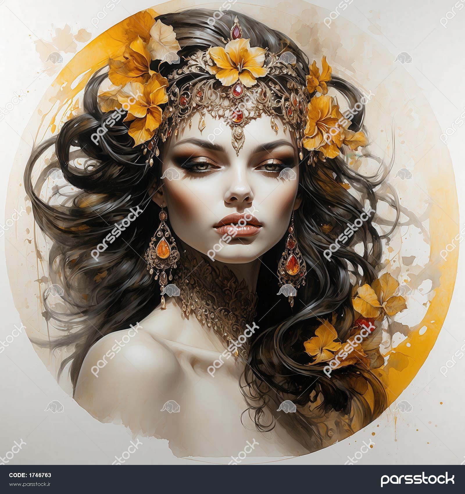 تصویر زن جذاب با تاج گل نارنجی و گردنبند طلایی برای تابلو لوکس تصویر زن جذاب مو قهوهای و تاج طلایی با نگین سرخ برای تابلو طرح زن سلطنتی با تاج و گردنبند طلایی برای چاپ روی ماگ و کوسن عکس چهره زن فانتزی با تاج و جواهرات طلایی و نارنجی برای تابلو طرح زن سلطنتی مو بلوند و تاج طلایی پاییزی برای چاپ روی ماگ و کوسن تصویر ملکه فانتزی با تاج طلایی و جواهرات آبی برای تابلو دکوراتیو تصویر زن جذاب با آرایش طلایی و تاج گل نارنجی برای پوستر مینیمال طرح ملکه فانتزی تاج و جواهر طلایی و گلهای نارنجی برای چاپ عریض تصویر چهره زن سلطنتی با تاج طلایی و موهای تیره برای چاپ عریض طرح زن جذاب با تاج و آرایش طلایی و گلبرگهای آبی برای پوستر مشاهده همه