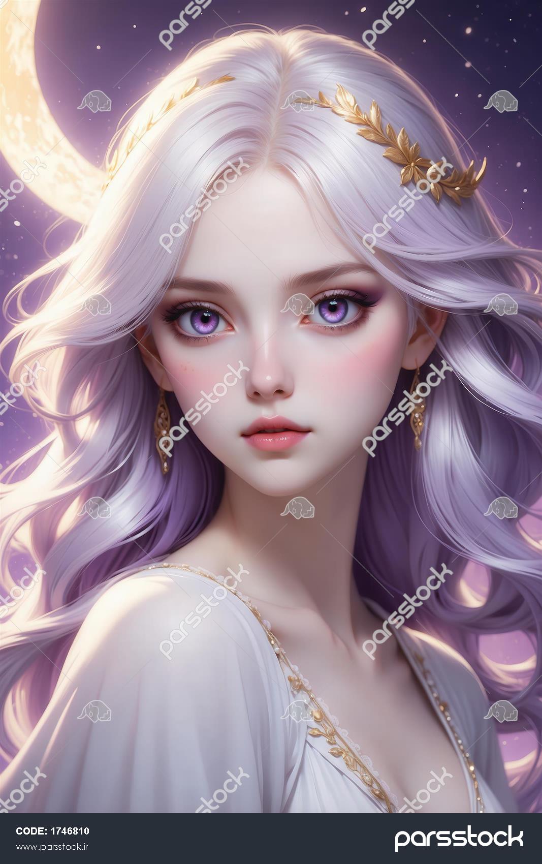عکس چهره دختر با موی بنفش روشن و تاج طلایی برای پوستر