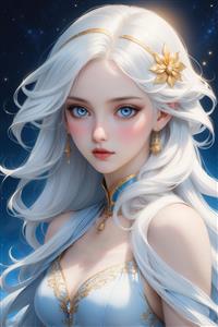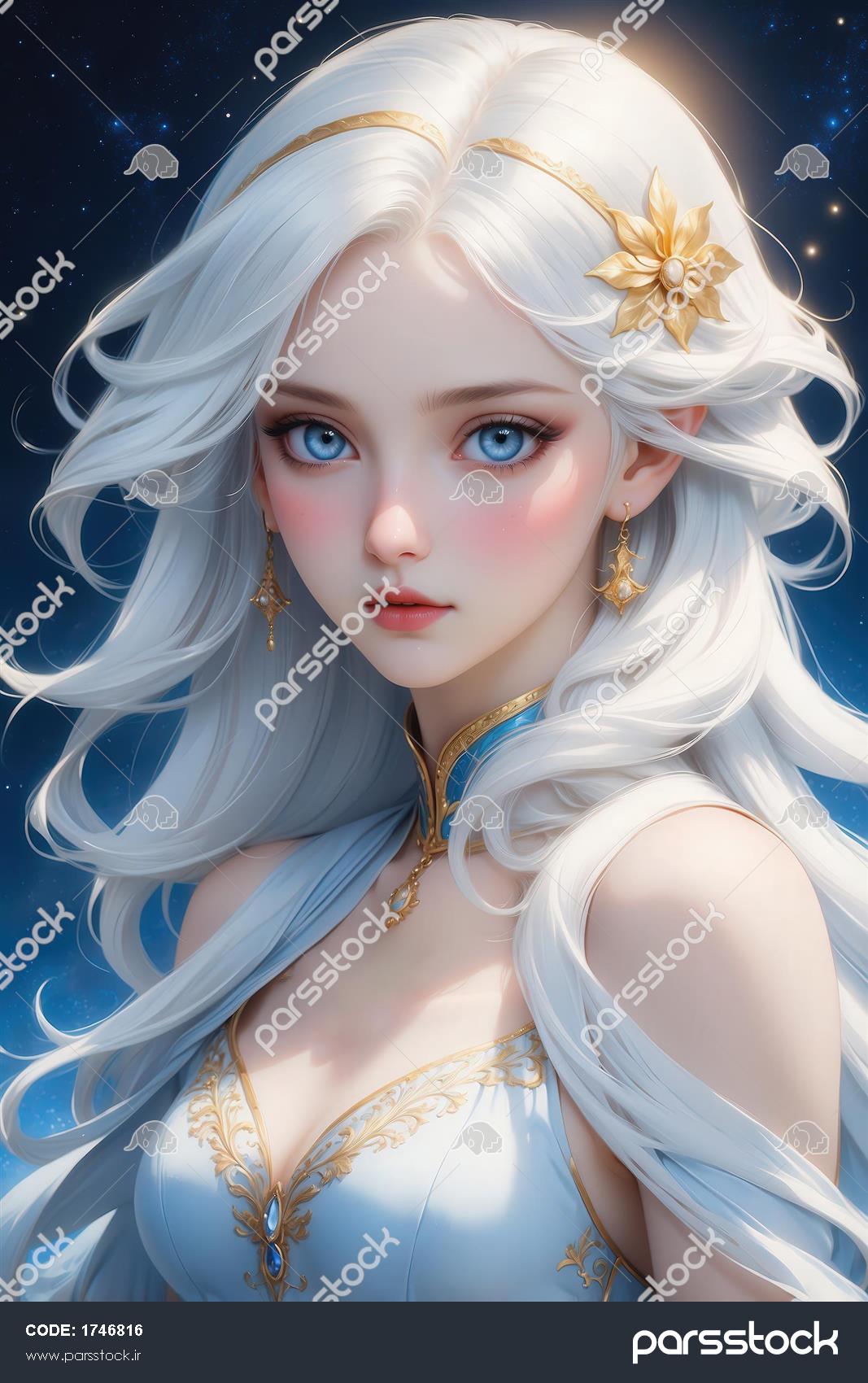 عکس دختر فانتزی با موی سفید و لباس آبی برای پوستر دیواری