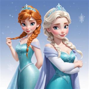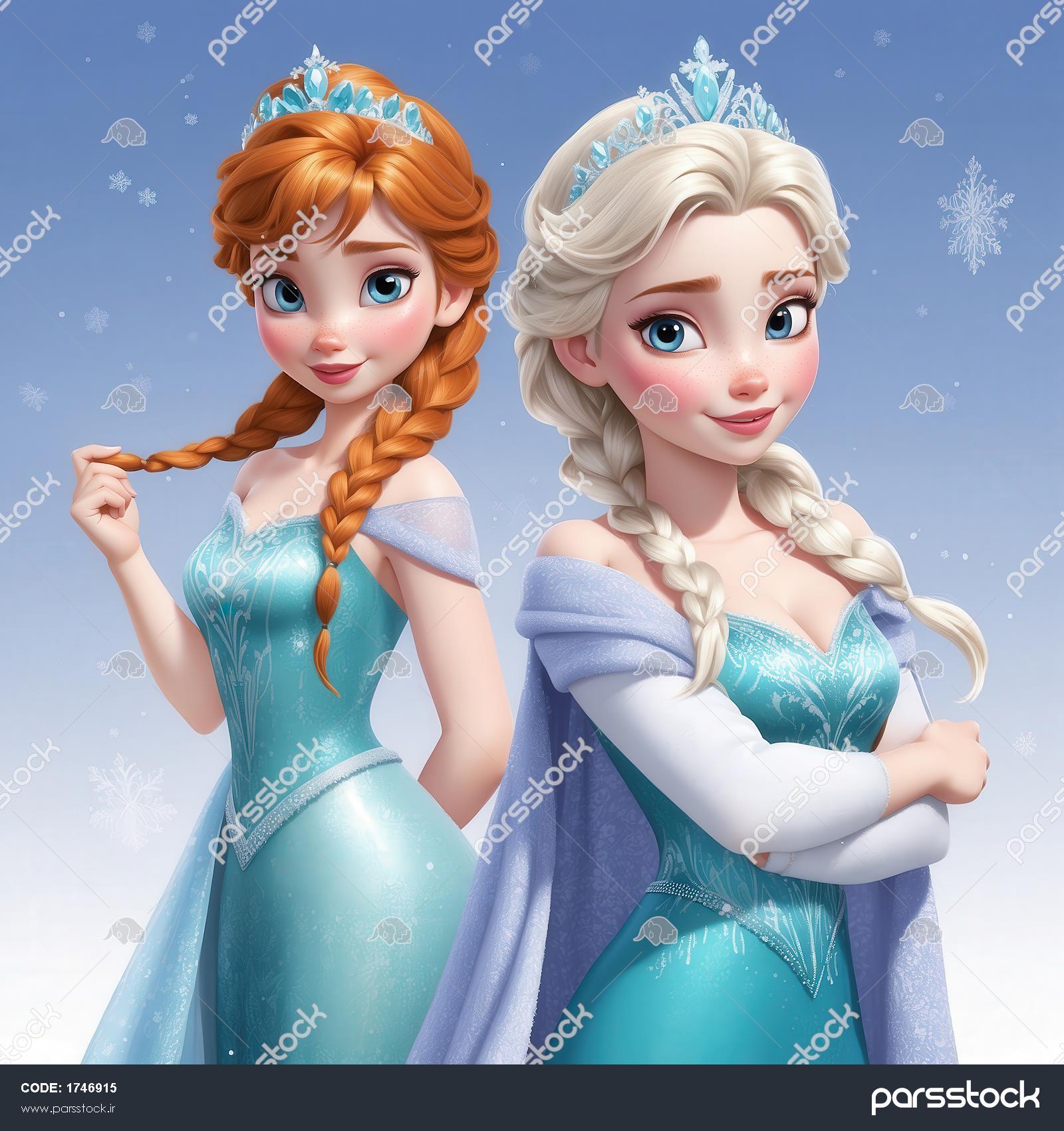 عکس السا و آنا کارتونی با لباس‌های آبی برای پوستر اتاق خواب دخترانه