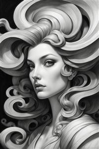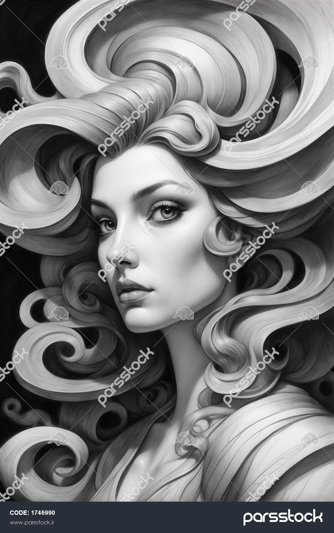 تصویر پرتره زن با موهای موج‌دار بلوند و حالت دار برای چاپ روی پرده