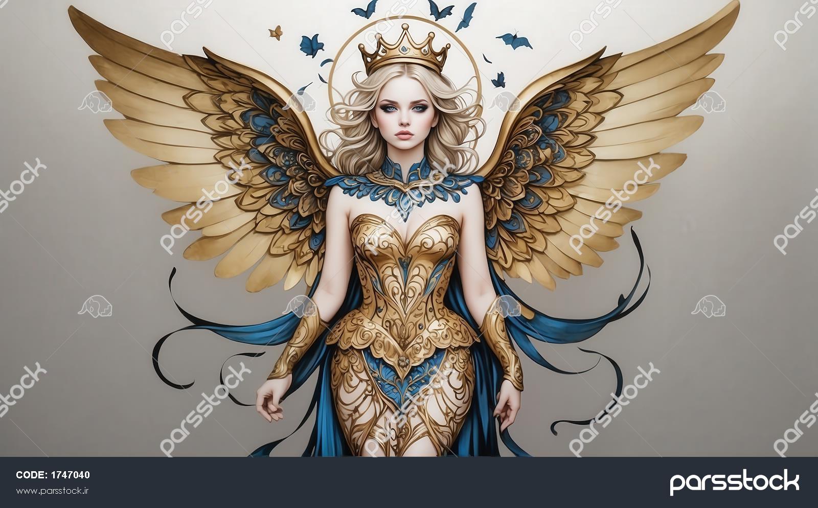 تصویر فرشته با لباس طلایی و تاج آبی برای پوستر دکوراتیو پذیرایی طرح فرشته بال طلایی با لباس آبی و تاج سلطنتی برای تابلو عکس فرشته با لباس طلایی براق و بالهای آبی تیره برای پوستر طرح فرشته با لباس مجلل طلایی و نگین آبی برای چاپ دکوراتیو عکس فرشته با موهای آبی تیره و لباس طلایی برای پرده و کوسن تصویر ملکهی بالدار با موی آبی و لباس طلایی پولکی برای تابلو تصویر الهه با لباس آستین بلند طلایی آبی برای تابلو دکوراتیو تصویر ملکه بالدار با لباس مجلل طلایی و آبی برای چاپ کوسن تصویر زن بالدار طلایی با لباس دکلته و بالهای مشکی آبی عکس ملکهی بالدار با لباس طلایی و سنگ آبی برای پوستر دیواری مشاهده همه