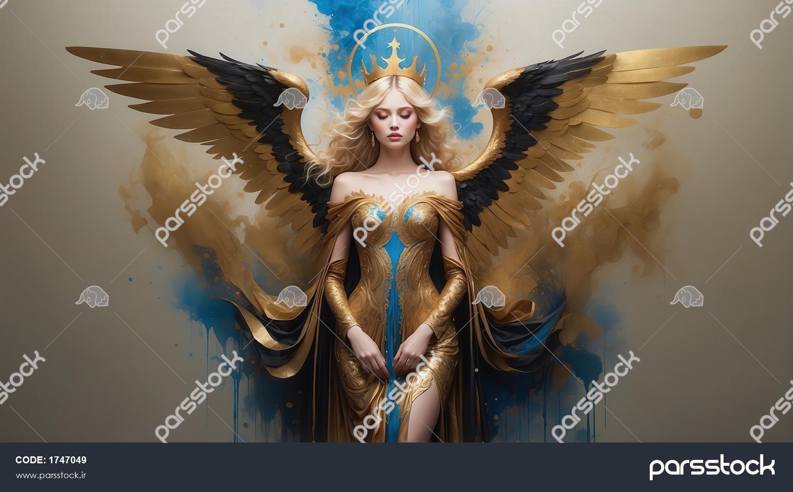 طرح فرشته بال طلایی با لباس آبی و تاج سلطنتی برای تابلو تصویر فرشته با لباس طلایی و تاج آبی برای پوستر دکوراتیو پذیرایی طرح الهه طلایی با پارچههای روان و تاج آبی برای پوستر دیواری عکس فرشته بال طلایی با موی آبی برای تابلو دکوراتیو لوکس طرح ملکهی بالدار با تاج طلایی و لباس پر جزئیات برای چاپ تصویر الهه با لباس آستین بلند طلایی آبی برای تابلو دکوراتیو تصویر زن بالدار با بالهای دو رنگ طلایی و آبی برای تابلو تصویر ملکهی بالدار با موی آبی و لباس طلایی پولکی برای تابلو عکس زن بالدار طلایی با تاج بزرگ و بالهای مشکی برای چاپ طرح زن بالدار طلایی با پارچههای آبی برای تابلو دیواری باکیفیت مشاهده همه