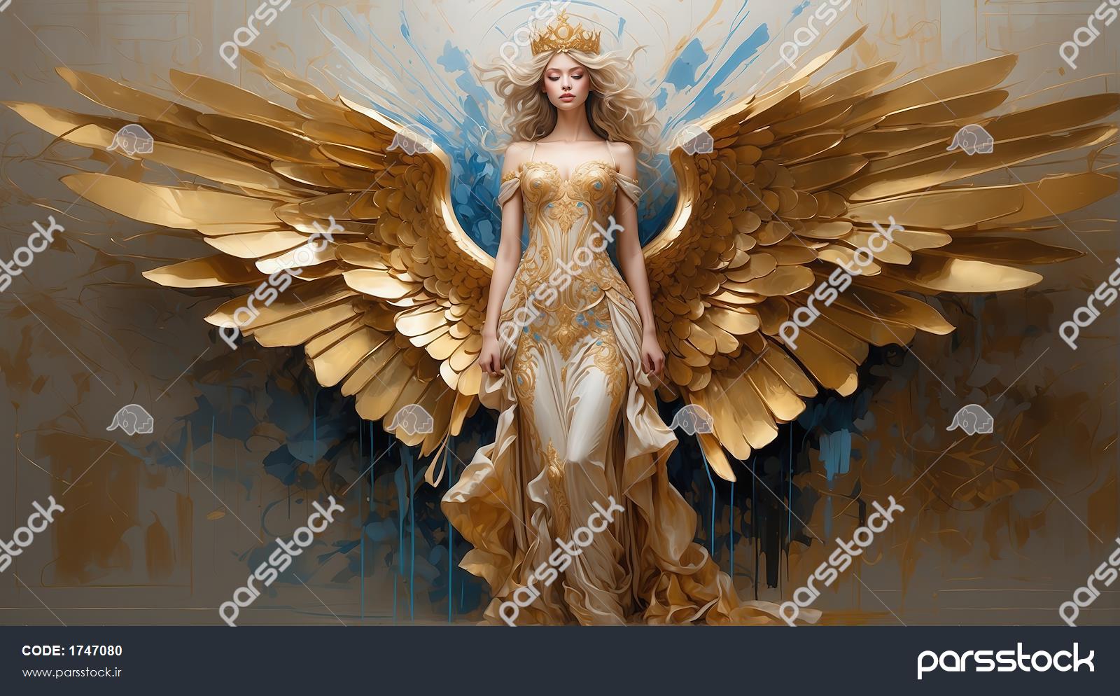 عکس زن بالدار طلایی با تاج بزرگ و بالهای مشکی برای چاپ طرح الهه بالدار با آستینهای افتاده و بالهای بزرگ برای چاپ طرح فرشته با بالهای بزرگ طلایی و موی فر برای پوستر دیواری طرح فرشته زن با لباس طلایی و بالهای بزرگ برای چاپ تابلو پذیرایی شیک پوستر زن فرشته با پوست آبی و لباس طلایی و بالهای بزرگ برای چاپ تصویر فرشته زن با بالهای بزرگ طلایی برای تابلو دکوراتیو پذیرایی تصویر فرشته زن با لباس آبی طلایی، بال و تاج بزرگ برای چاپ دکور عکس فرشته طلایی زنانه با لباس و بالهای بزرگ برای پوستر دکوراتیو فانتزی تصویر فرشته زن زیبا با بالهای طلایی بزرگ برای تابلو اتاق خواب عکس پرتره فرشته با تاج و بالهای بزرگ طلایی برای تابلو نشیمن شیک مشاهده همه