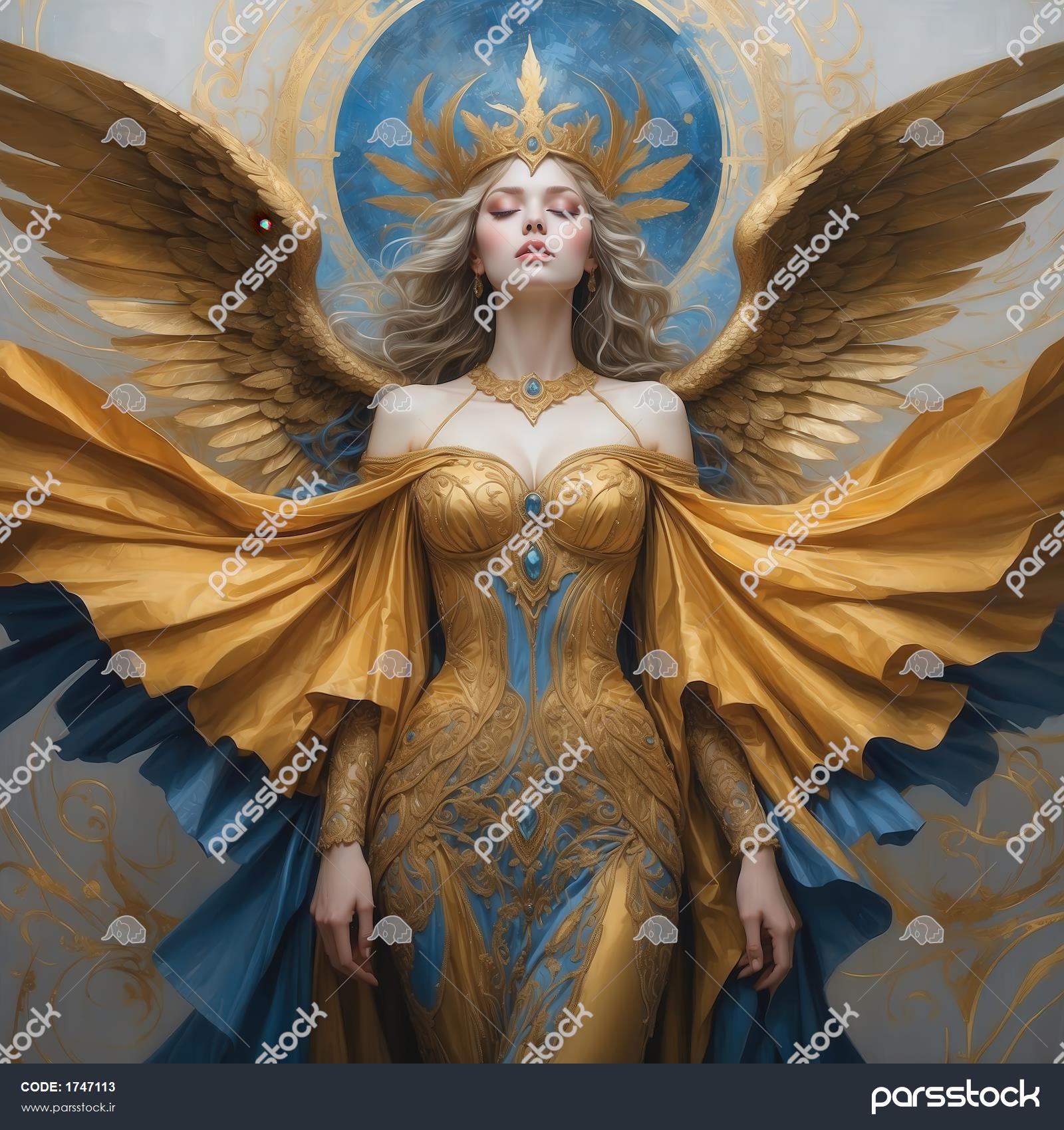 تصویر فرشته زیبای زن با بال طلایی و لباس آبی سلطنتی برای تابلو اتاق خواب طرح فرشته بال طلایی با لباس آبی و تاج سلطنتی برای تابلو تصویر زن فرشته با موی آبی، لباس طلایی و شنل آبی برای چاپ عریض تصویر زن فرشته با لباس سفید و طلایی و پسزمینه انتزاعی طلایی و آبی عکس زن فرشته با لباس روان طلایی و آبی و پسزمینه انتزاعی روشن طرح زن فرشته با بال طلایی بزرگ، لباس آبی و طلایی و پسزمینه روشن عکس زن فرشته با لباس تنگ طلایی و آبی و بالهای پهن برای دکوراسیون تصویر زن فرشته با بال طلایی ساده و لباس طلایی آبی مناسب چاپ روی ماگ عکس زن فرشته با لباس طلایی و آبی و بالهای پر باکیفیت برای دکور عکس پرتره فرشته زن با لباس آبی طرحدار و بال طلایی برای چاپ نمایش همه