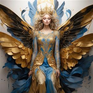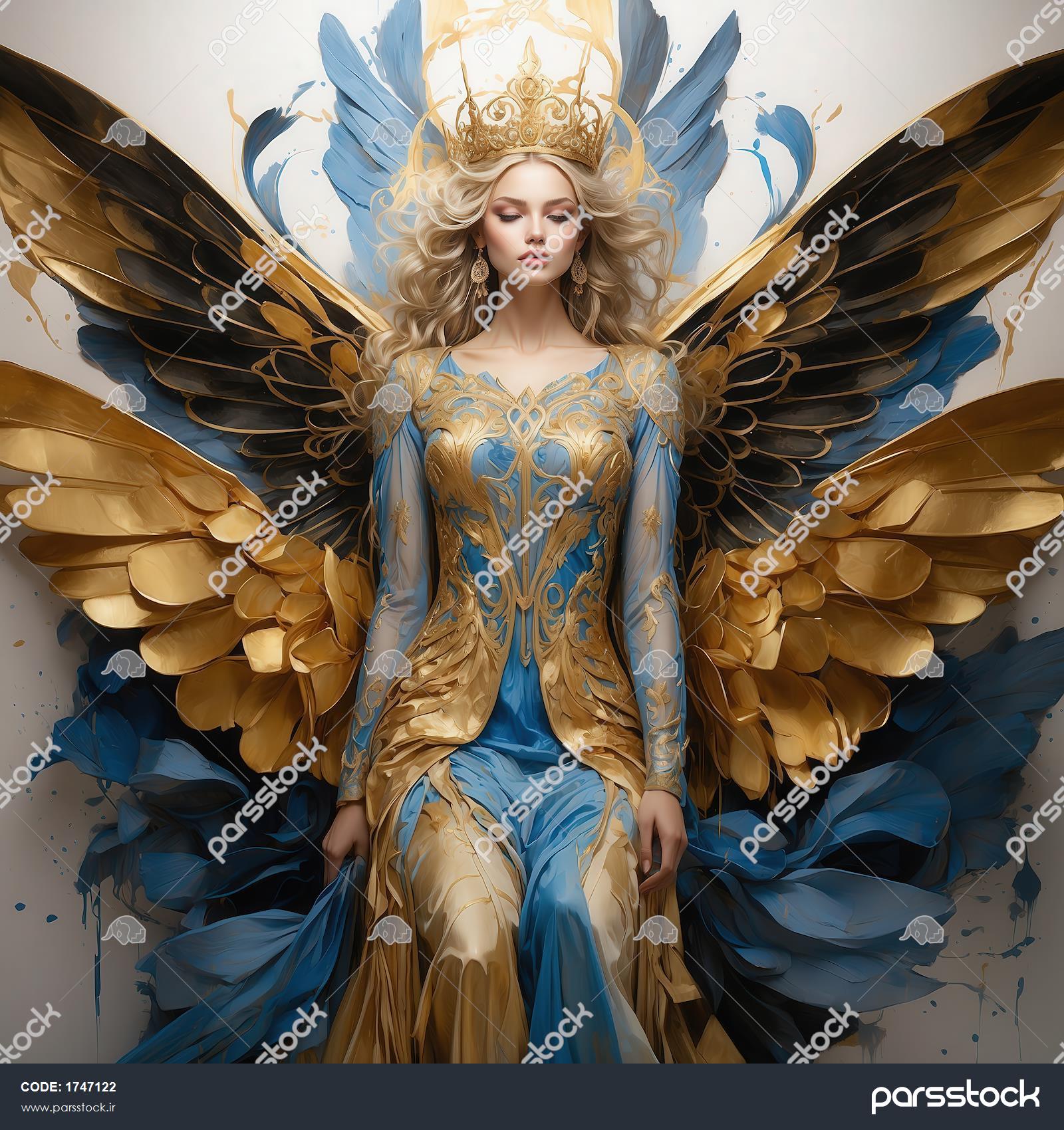 تصویر زن فرشته با بال طلایی ساده و لباس طلایی آبی مناسب چاپ روی ماگ عکس پرتره فرشته زن با لباس آبی طرحدار و بال طلایی برای چاپ تصویر زن فرشته با موی آبی، لباس طلایی و شنل آبی برای چاپ عریض طرح فرشته زن با لباس طلایی و بالهای بزرگ برای چاپ تابلو پذیرایی شیک طرح فرشته بال طلایی با لباس آبی و تاج سلطنتی برای تابلو تصویر فرشته زن با لباس آبی طلایی، بال و تاج بزرگ برای چاپ دکور طرح زن فرشته با لباس طلایی، شال گشاد و بالهای پهن برای تابلو دیواری طرح ملکهی بالدار با تاج طلایی و لباس پر جزئیات برای چاپ طرح زن بالدار و تاجدار با لباس فاخر طلایی و آبی برای دکوراسیون پذیرایی تصویر زن فرشته با لباس سفید و طلایی و پسزمینه انتزاعی طلایی و آبی نمایش همه