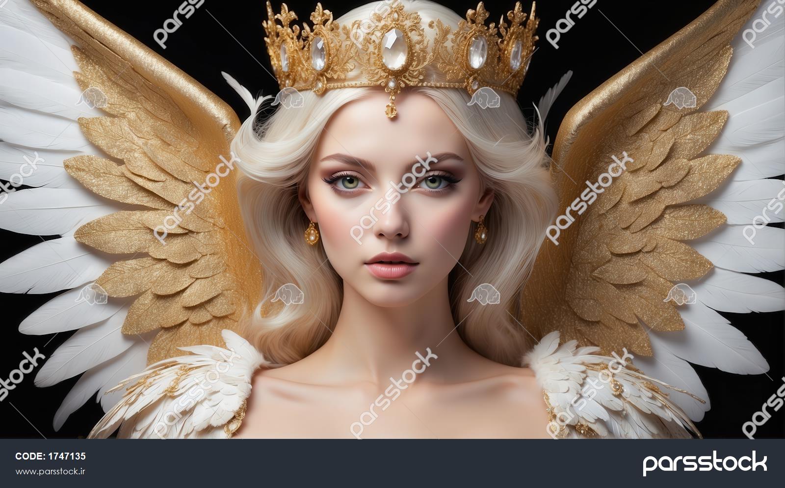 طرح پرتره ملکه فرشته با موی سفید پلاتینیوم برای پوستر چاپی