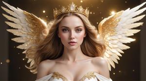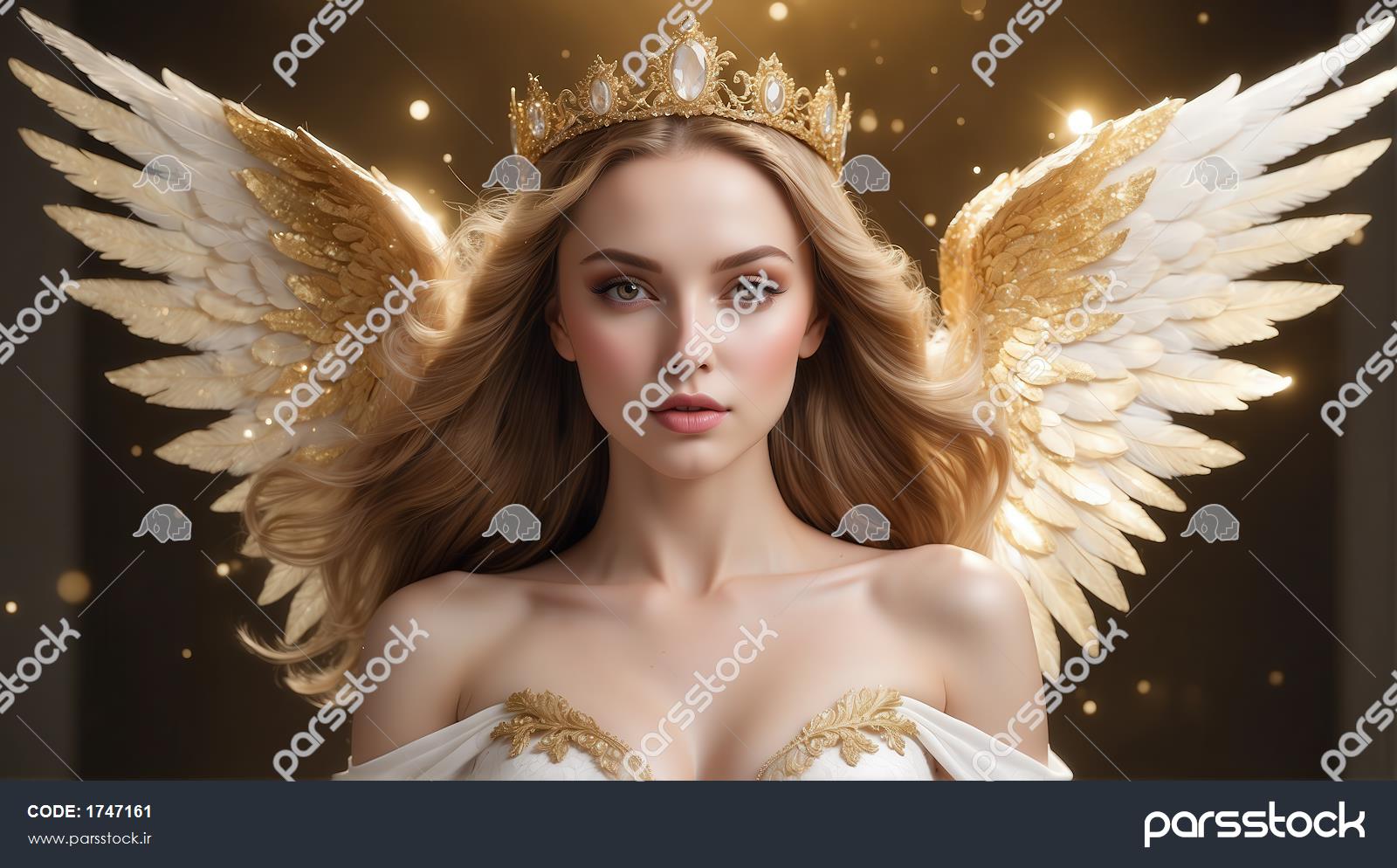 تصویر زن بالدار با تاج طلایی و بال‌های سفید برای چاپ روی روتختی