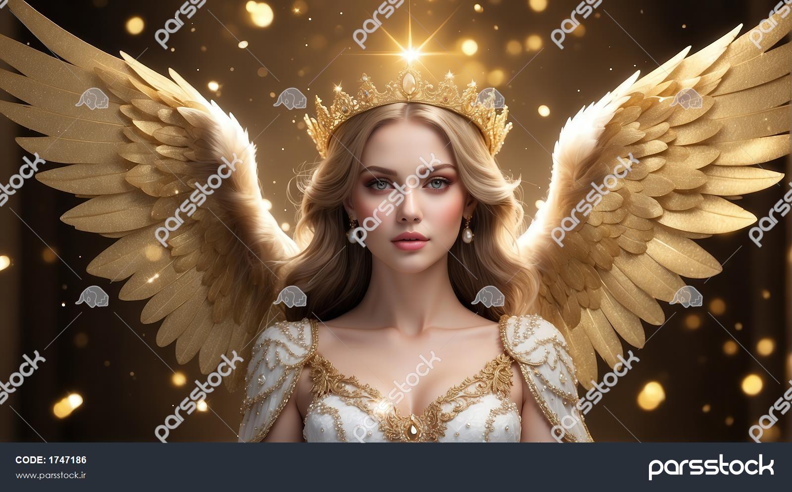 تصویر فرشته با تاج و گردنبند طلایی برای چاپ روی کوسن