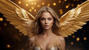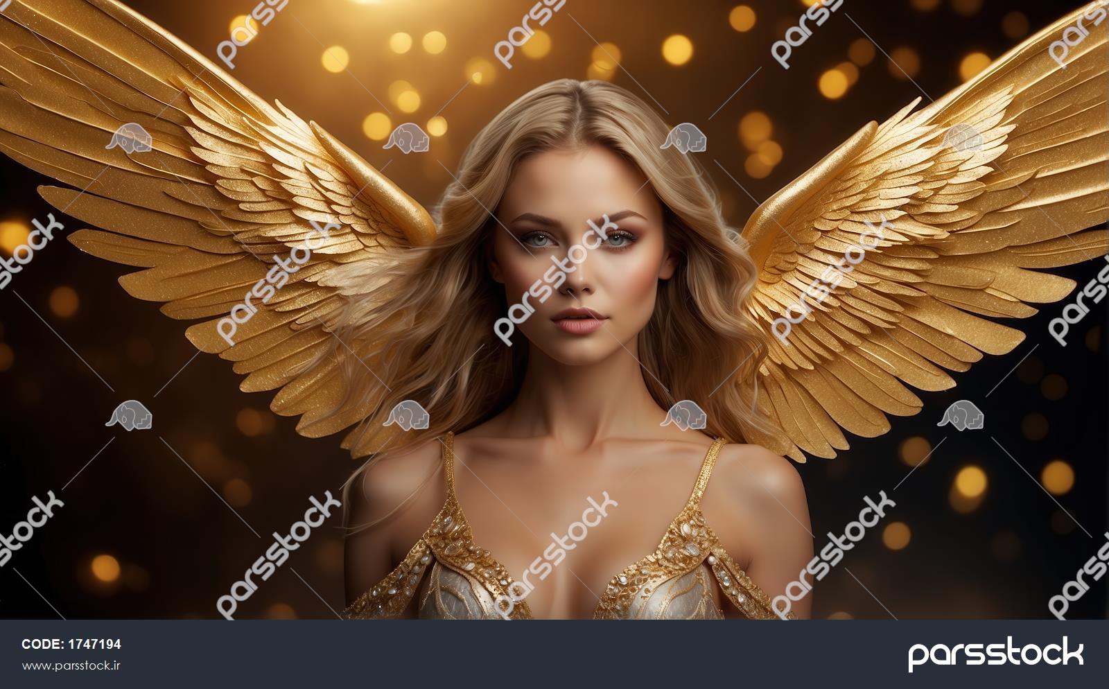 عکس فرشته با بال‌های طلایی بزرگ و زره سینه برای پرده