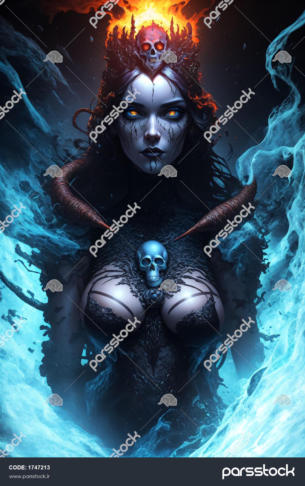 عکس ملکه شیطانی با جمجمه درخشان برای تابلو فانتزی تاریک