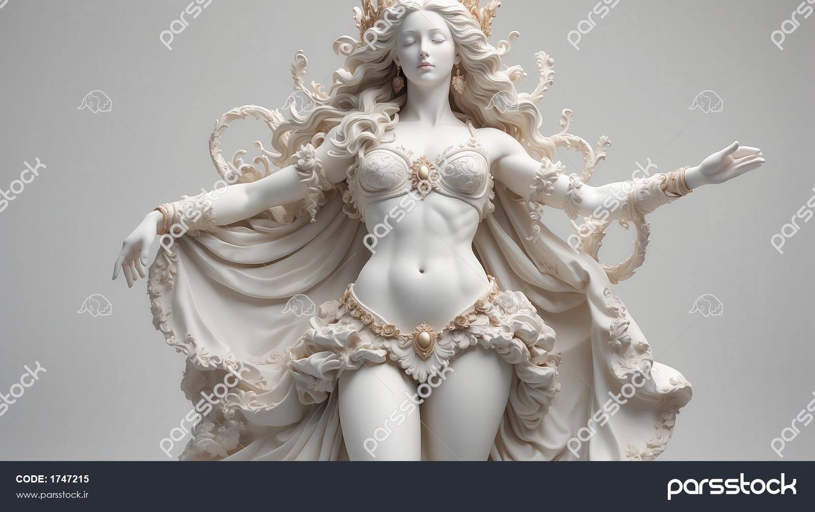 عکس مجسمه زن با تاج و لباس نیم‌تنه برای پوستر دیواری مدرن