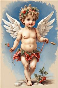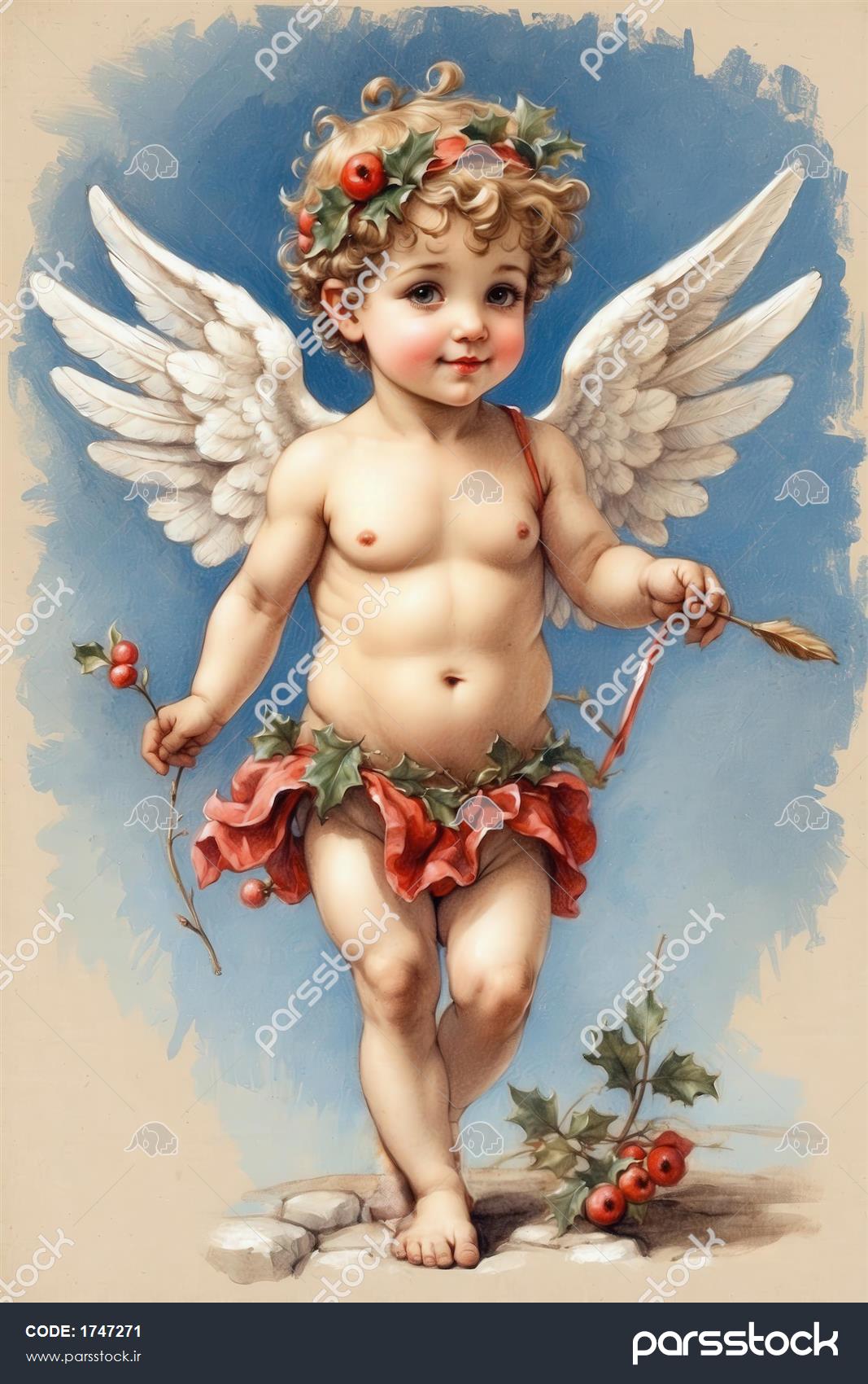 طرح فرشته کودکانه آبرنگی کریسمس با میوه قرمز برای چاپ روتختی