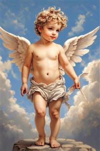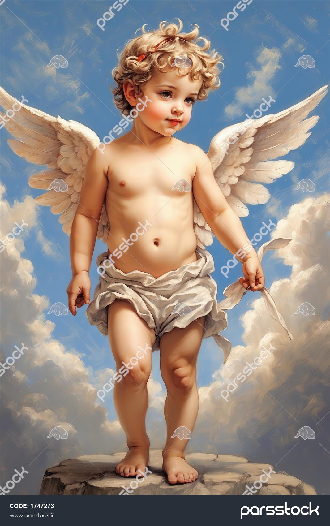 تصویر فرشته کوپیدو آبرنگی کلاسیک با بال روی صخره برای چاپ بوم