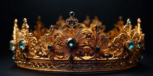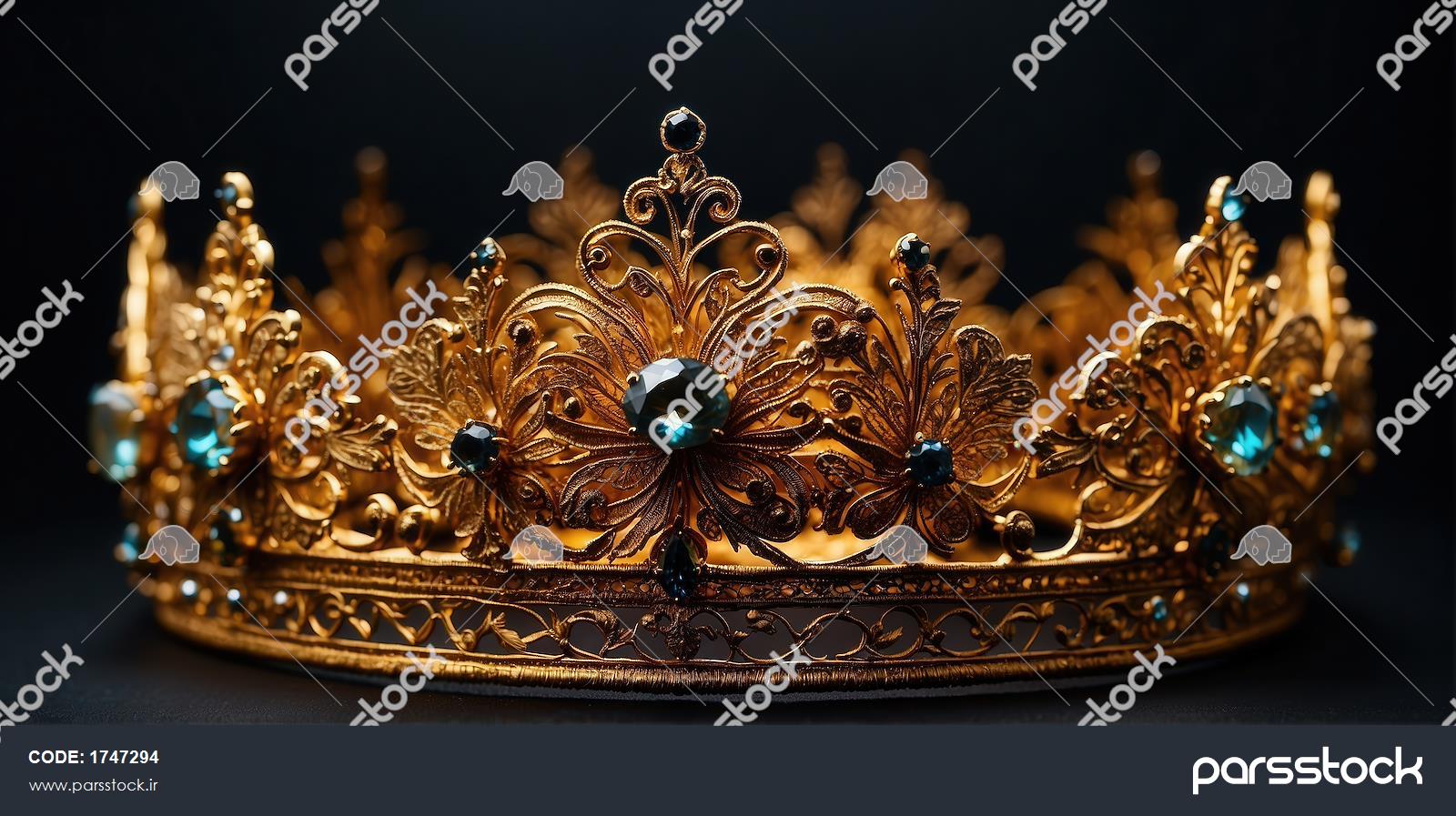تصویر تاج پادشاهی طلایی با نگین‌های آبی فیروزه‌ای برای دکوراسیون لوکس