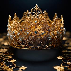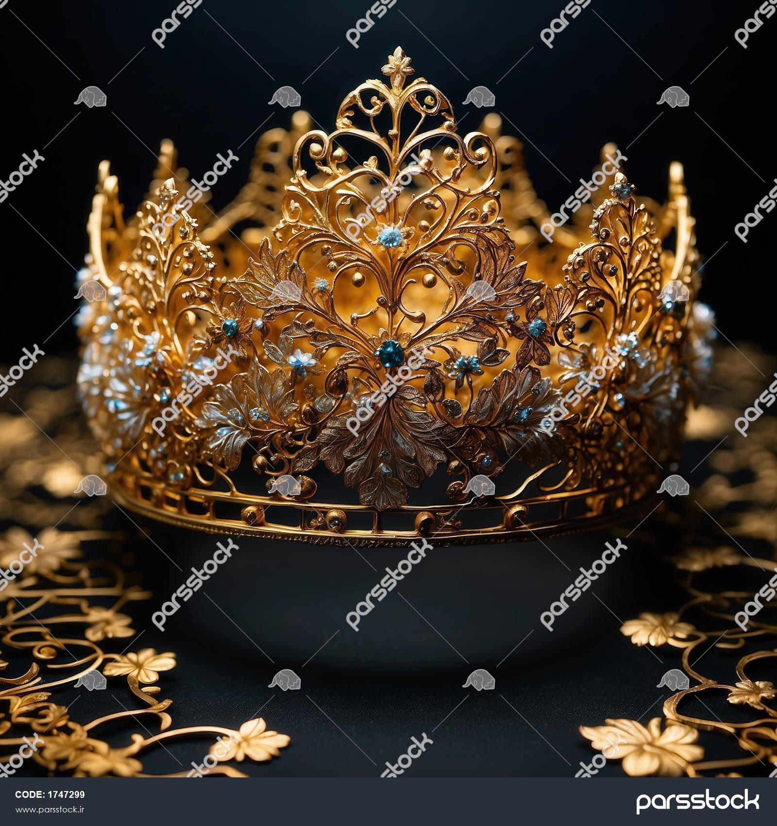 تصویر تاج سلطنتی طلایی با برگ‌های نقره‌ای و نگین برای چاپ روتختی