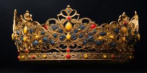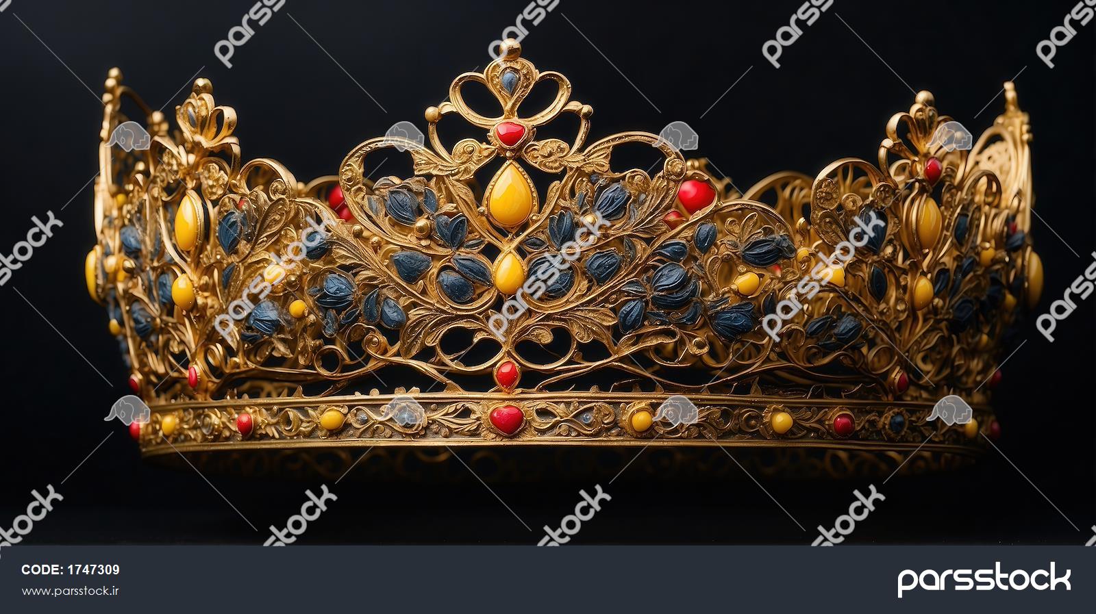 عکس تاج ملکه‌ای طلایی با نگین‌های نارنجی و آبی تیره برای چاپ ماگ