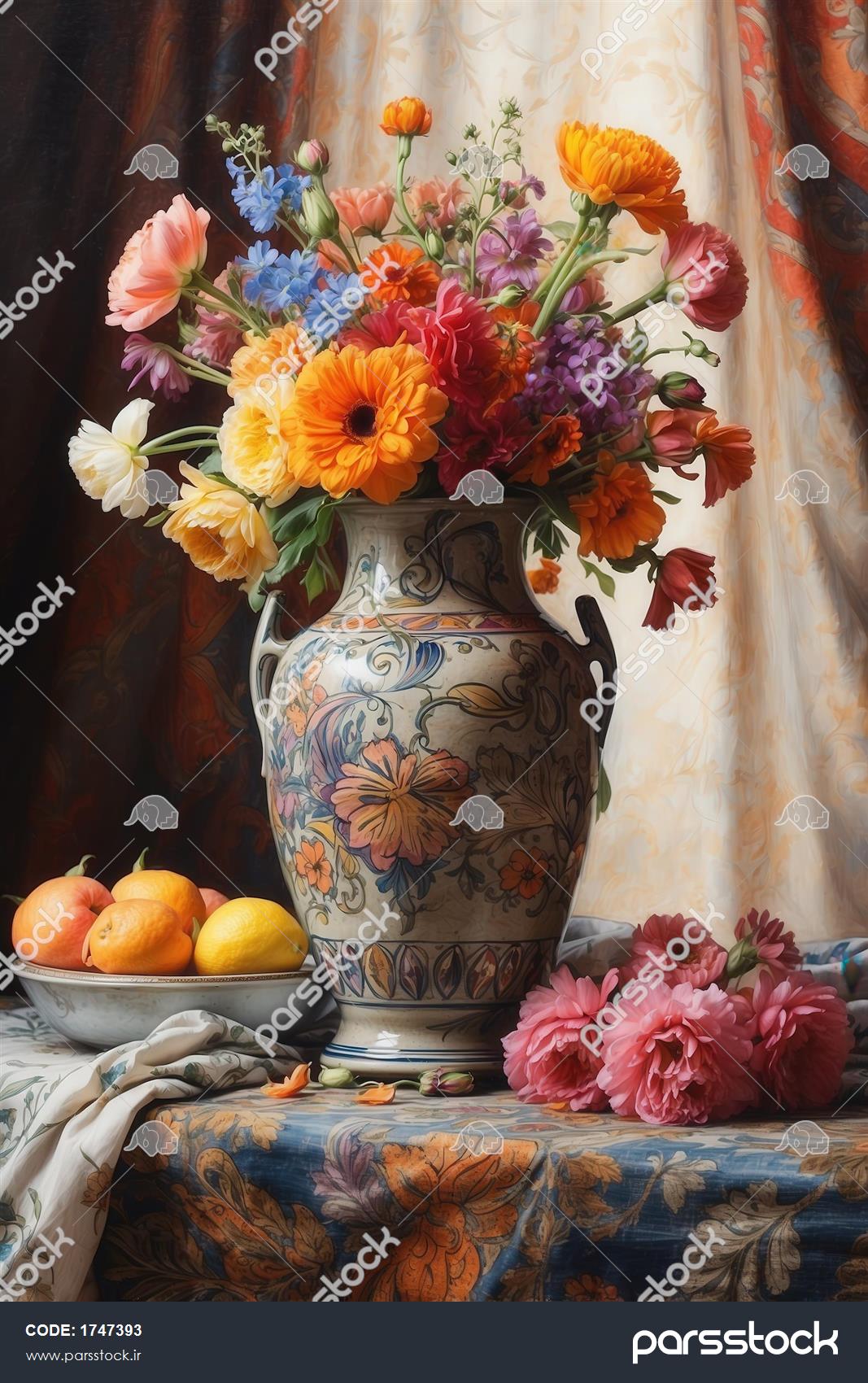 عکس گلدان کلاسیک با گلهای پاییزی و پرتقال و لیمو برای چاپ عریض طرح گلدان آبی دستهدار با گلهای رنگی و میوه برای چاپ عکس گلدان آبی با گلهای نارنجی و صورتی در فضای کلاسیک برای چاپ عکس نقاشی گلهای رز و لاله در گلدان قدیمی برای چاپ روی کوسن و ماگ طرح گلدان آنتیک با گلهای انبوه و پرتقال مناسب چاپ عریض پرده تصویر گلدان آبی عتیقه با گلهای رنگارنگ و بشقاب پرتقال برای چاپ تصویر گلدان سنتی با گلهای رز و بنفشه برای چاپ روی کوسن و روتختی تصویر گلدان چینی طرحدار با گلهای متنوع و پررنگ مناسب چاپ عریض طرح گلدان آبی سنتی با گلهای رنگی و پرتقال برای پوستر دیواری منزل طرح گلدان آبی نفیس با گلهای نارنجی و پرتقال روی میز برای تابلو مشاهده همه