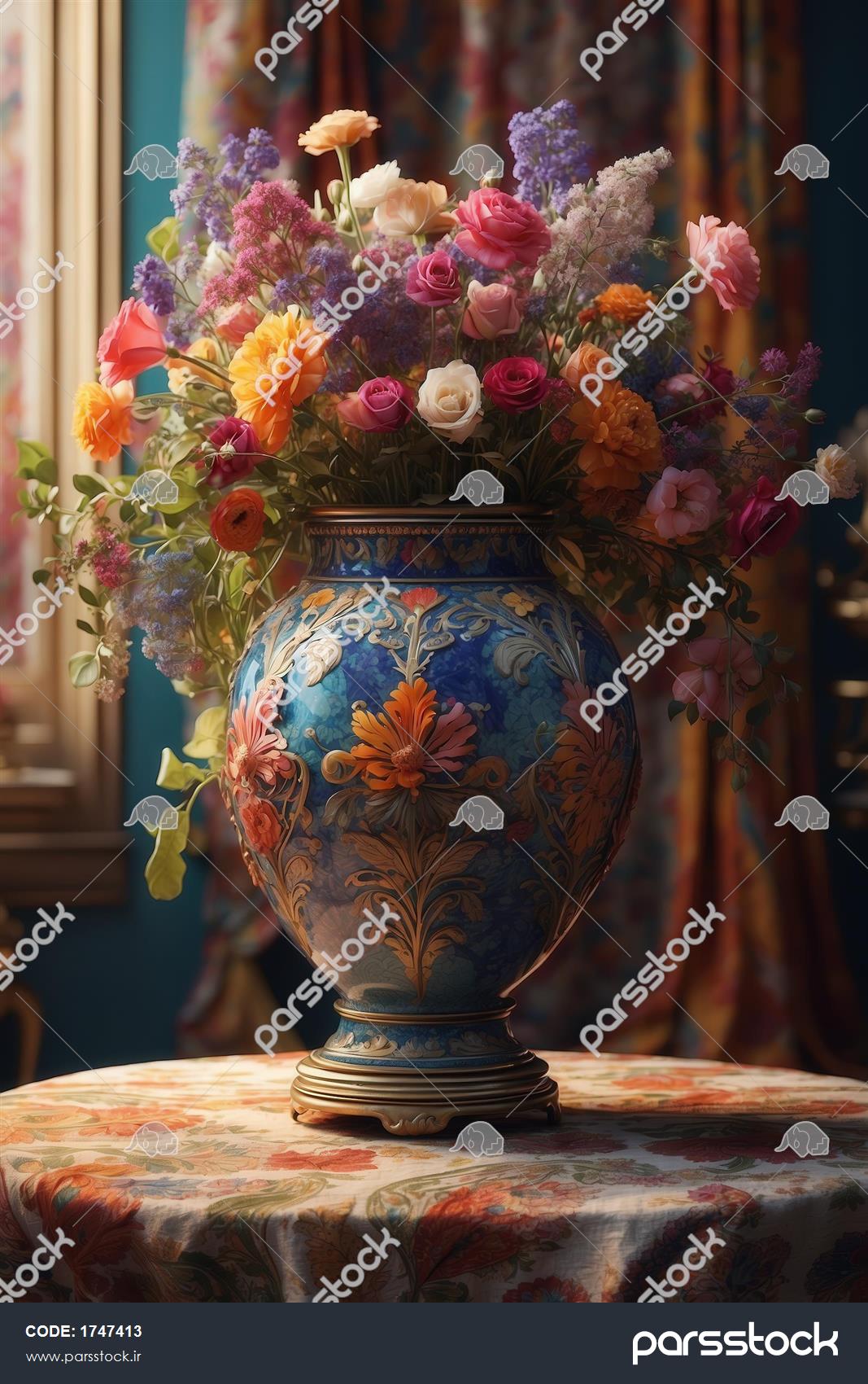 طرح گلدان آنتیک با گلهای انبوه و پرتقال مناسب چاپ عریض پرده تصویر گلدان مجلل آبی با گلهای رز نارنجی و صورتی برای دکوراسیون شیک ظرف تزیینی سلطنتی آبی و طلایی، گلدان عتیقه با طرحهای برجسته و درب، دکوراسیون مجلل آنتیک عکس گلدان آبی با گلهای مجلل و پرتقال کنار پنجره برای تابلو پذیرایی تصویر گلدان چینی طرحدار با گلهای متنوع و پررنگ مناسب چاپ عریض عکس گلهای رز پررنگ در گلدان سلطنتی دکوراتیو برای تابلو پذیرایی عکس گلدان آبی پر از گلهای نارنجی و پرتقال برای تابلو منزل باکیفیت عکس گلدان آبی با گلهای نارنجی و صورتی در فضای کلاسیک برای چاپ تصویر گلدان آبی عتیقه با گلهای رنگارنگ و بشقاب پرتقال برای چاپ تصویر گلدان سنتی با گلهای رز صورتی و نارنجی برای پرده و پوستر نمایش همه