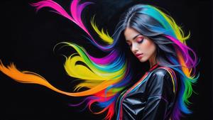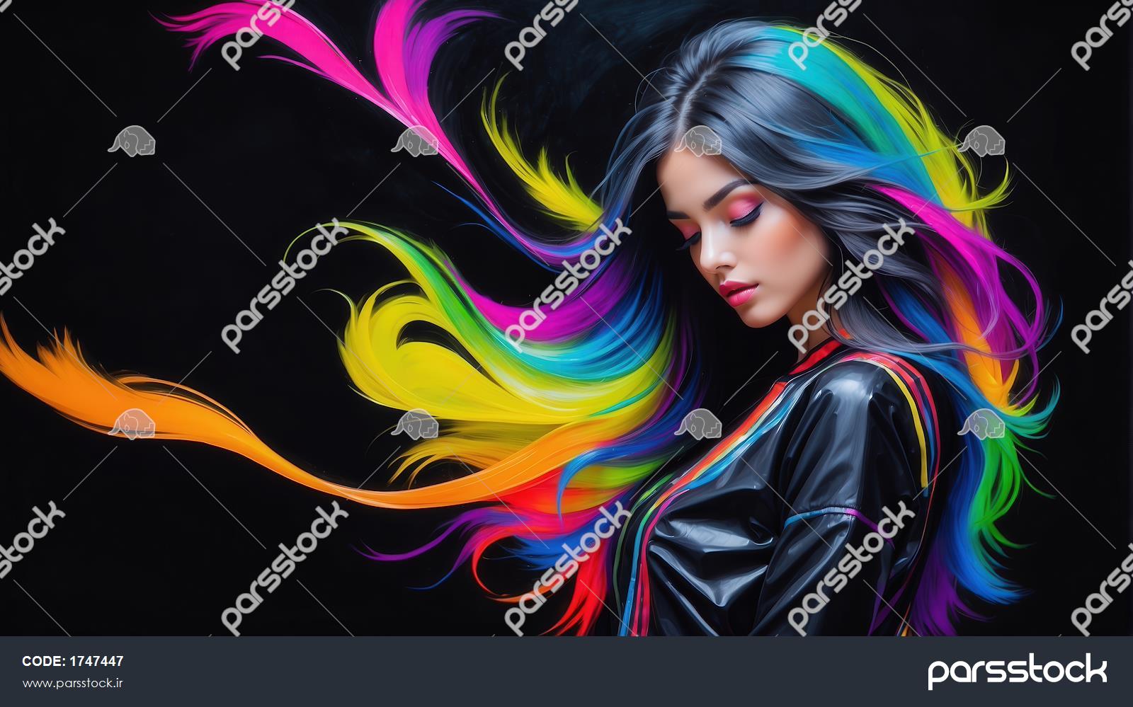 عکس پرتره دختر با موهای رنگارنگ و ژاکت چرمی تیره