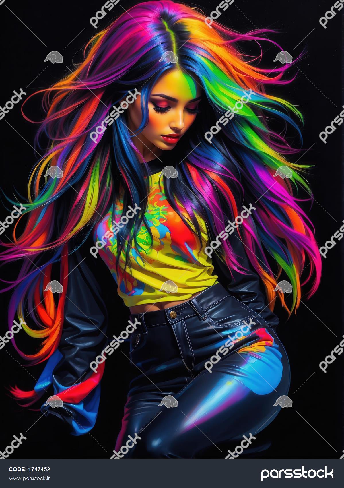عکس پرتره زن با موهای نئون و لباس رنگارنگ برای تابلوی هنری طرح چهره دختر با موهای رنگی پرحجم برای تابلوی اتاق خواب تصویر زن با موهای نئون رنگارنگ و تیشرت آبرنگی برای چاپ عکس مدل زن با موهای رنگارنگ و لباس چرمی براق نئونی تصویر چهره دختر با موهای تیره و نئون رنگی برای تابلوی هنری تصویر مدل زن با موهای نئونی و لباسهای رنگارنگ برای چاپ پرده عکس چهره دختر با موهای بلند نئونی برای تابلوی دکوراتیو منزل طرح پرتره دختر با موهای نئونی رنگینکمان برای چاپ پرده و شال عکس دختر با مو و بدن رنگی نئونی برای چاپ روی ماگ و کوسن طرح پرتره دختر نئون با نوردهی رنگارنگ برای تابلوی هنری خاص نمایش همه