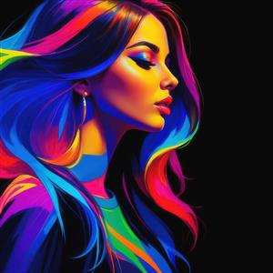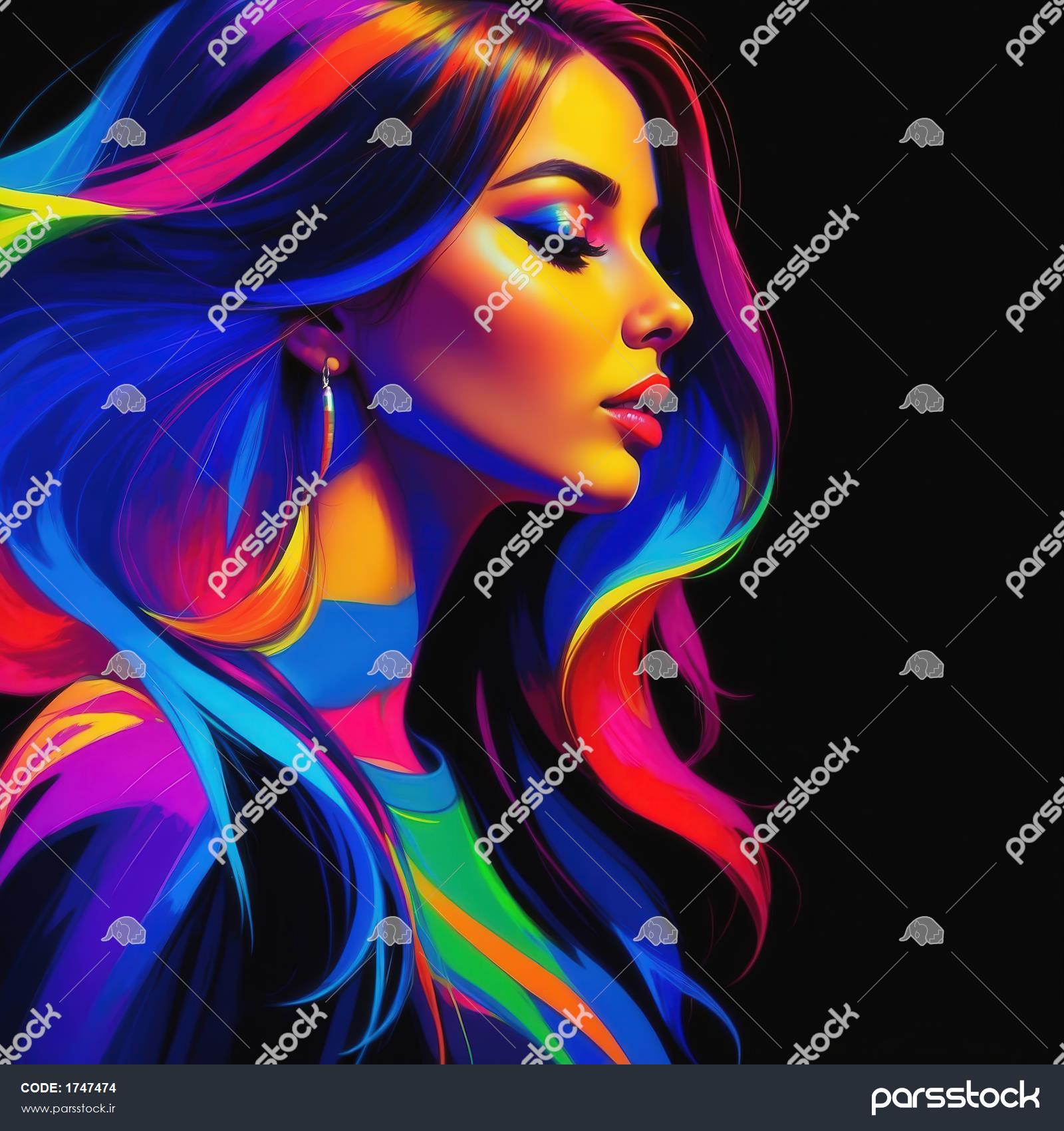 طرح نیم‌رخ دختر با موهای بلند و رنگین‌کمانی برای چاپ پوستر