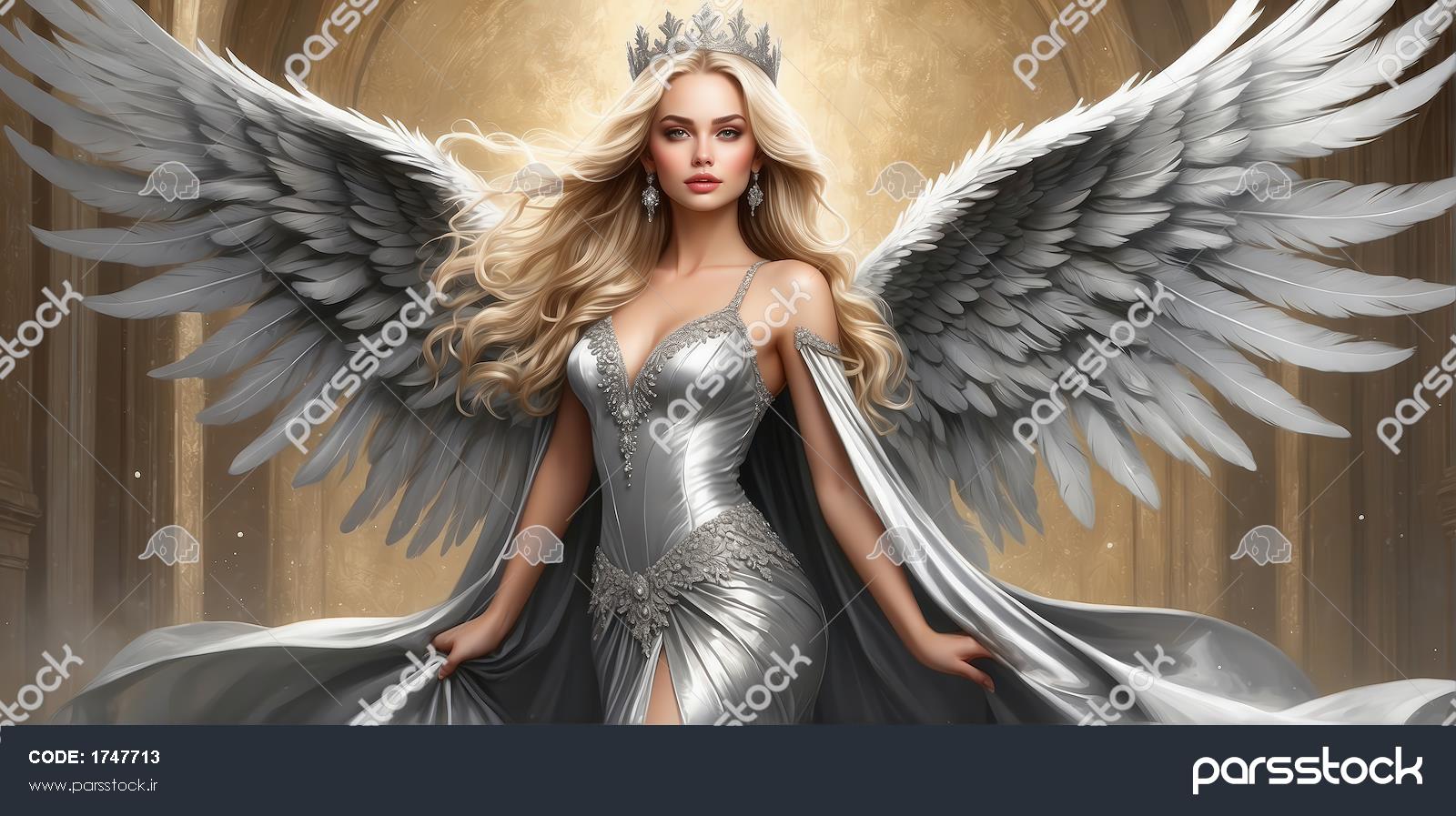 تصویر هنری فرشته سلطنتی با تاج کریستالی و لباس مجلسی شیک در پسزمینه تیره عکس فرشته زن با لباس سلطنتی طلایی آبی و بالهای گشاد برای پوستر عریض عکس بانوی فرشته با لباس نقرهای برای چاپ روی پرده و کوسن عکس الهه فرشته بلوند با لباس مجلسی برای تابلو دکوراتیو عریض تصویر زن با تاج سلطنتی و لباس سرخابی برای تابلو دیواری لوکس تصویر زن فرشته با لباس بالاتنه طرحدار آبی و طلایی برای پوستر لاکچری عکس فرشته بالدار زن با لباس طلایی و آبی برای تابلو دکوراتیو لوکس طرح ملکه فرشته با لباس سفید و جواهرات فیروزهای برای پوستر دیواری فرشته بلوند با لباس و بالهای طلایی سفید و جواهرات سلطنتی فرشته باشکوه با بالهای طلایی و لباس طلایی، الهه سلطنتی نمایش همه