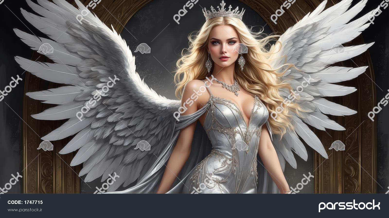 عکس الهه فرشته بلوند با لباس مجلسی برای تابلو دکوراتیو عریض